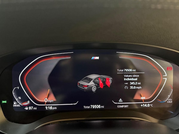 This 2022 BMW 5 Series 530d M Sport is a superb example, having had only one owner since new. This four wheel drive saloon boasts a powerful 3.0 litre diesel hybrid engine, meeting Euro 6 emissions standards. The M Sport trim enhances its sporty appeal, and it comes equipped with the desirable M Sport Pro Package and Technology Package, which includes a Head Up Display and a premium Harman Kardon Surround Audio Sound System. Further enhancing comfort and convenience are the features within the Comfort Package, offering keyless entry, memory seats, and a heated steering wheel, all complemented by striking 20 inch M Light Y-Spoke Style 846 Bicolour Jet Black alloy wheels with run flat tyres. Experience impressive performance with this 530d M Sport, capable of accelerating from 0 to 62mph in just 5.4 seconds, demonstrating its dynamic capabilities. The generous boot space ensures practicality for everyday use and longer journeys. The combination of its advanced hybrid technology, sophisticated M Sport enhancements, and comprehensive package of comfort and technology features positions this BMW 5 Series as a standout choice, offering a refined and engaging driving experience that surpasses many other vehicles in its class.