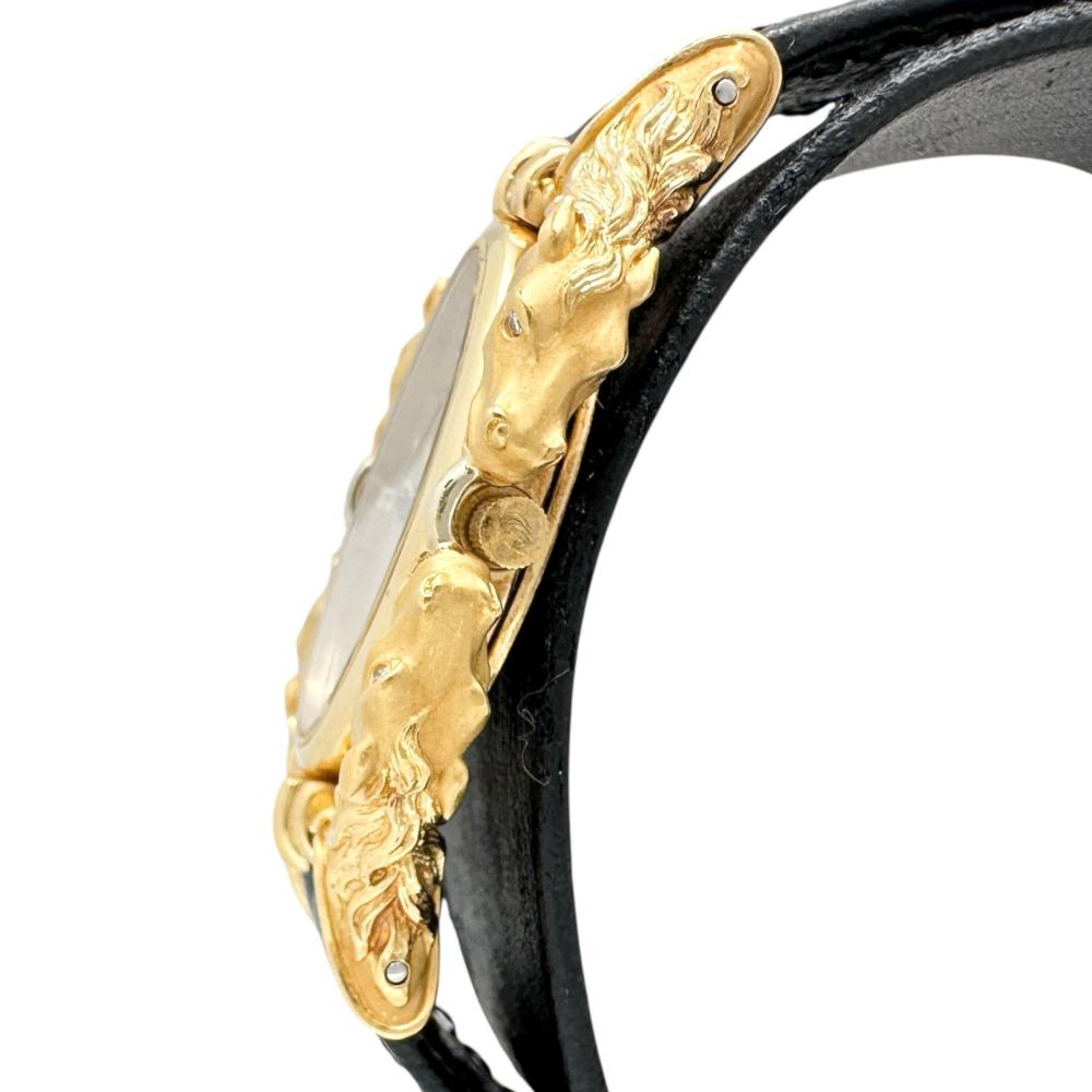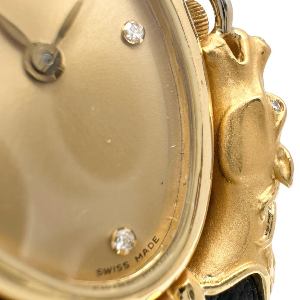 | Condition details | The strap shows some signs of wear and age. The strap keeper is torn. (Image 6) There are a few small scratches on the bezel. (Image 7) There are small scratches on the crystal. (Image 8) There is some dust on the dial and corrosion on the hands. (Images 8, 9) Overall, there are no noticeable scratches and it is in fairly good condition. *Battery has been replaced., |