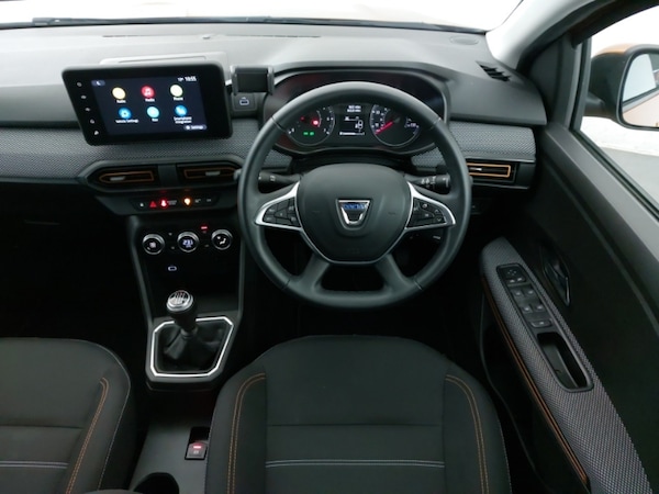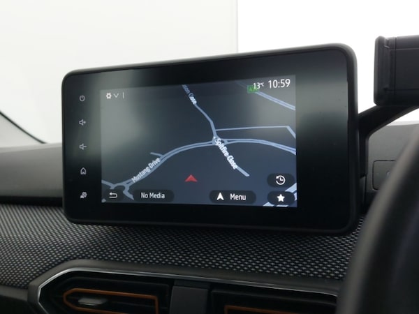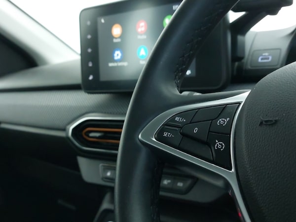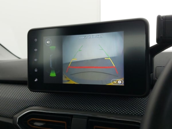8"" MediaNav - DAB Radio, Wifi smartphone replication, Bluetooth, 6 speakres, Apple CarPlay and Android Auto, Cruise control with speed limiter, Blind spot warning, Front parking sensors, Rear parking sensors, Reversing camera, Eco mode, USB connection for data transfer and charging, Auto lighting, Automatic wipers, Electrically adjustable and heated door mirrors, Front fog lights, LED automatic daytime running lights, LED Y-shape Dacia signature lighting, Rear electric windows, One touch electric front windows, Automatic air conditioning, 1/3 to 2/3 split folding rear seats, Fabric upholstery, Isofix points for child seats in both outer rear seats, High central armrest with console storage, Door open warning, Automatic emergency braking system, ABS and Emergency brake assist, Electronic parking brake, Front curtain airbags, Front side airbags, Remote central locking, Keyless entry, Immobiliser, 16"" Diamond-effect alloy wheels