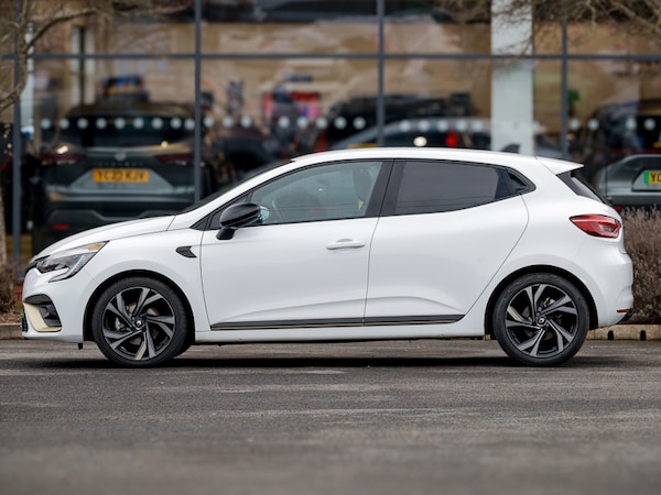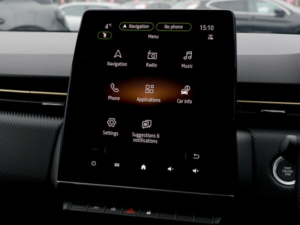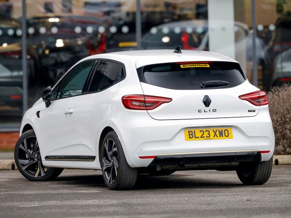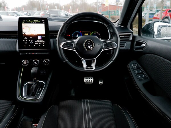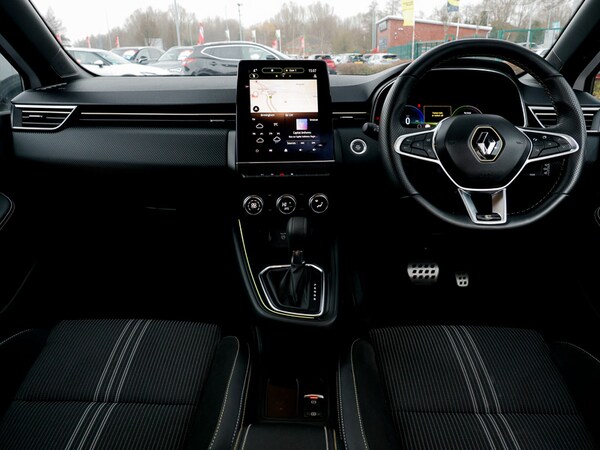 This is a Click & Collect location. Find your perfect car online and we’ll bring it closer to you. Reserve your favourite for only £99 and arrange collection to this branch. Contact us to learn more. Rear view camera, Easy link navigation with 9.3"" touchscreen+4x20W amplifier+FM DAB double tuner, sound auditorium, 2xUSB/1xjack/bluetooth, smartphone integration plus, Apple car play/Android Auto, Lane keep assist, Over speed prevention warning, Upper dashboard soft covered with positive thermoforming type 2, Variable assistance electric PAS, Trip computer, Traffic sign recognition, Rear parking sensors, Lane departure warning system, Gear change indicator, Front parking sensors, Emergency call system, Eco mode driving function, E-call, Cruise control + speed limiter, 10"" driver information display cluster, E-TECH battery, Variable speed on front windscreen wipers, Shark fin antenna, Rear wiper, Rear side wing doors, Rear roof spoiler - gold styling elements, Rear fog lights, Manually adjustable door mirrors, Manual folding wing mirror mechanism, LED third brake light, LED reverse light, LED front fog lights, Heated rear windscreen, Gun Metal insert on lower side doors with Clio embossing, Full LED front and rear headlamps integrating daytime running lights at the front and rear, Full C-shape LED front and rear signature lighting, Front and rear LED roof light x 2, Extra tinted glass on rear windows + tailgate, Exterior rear hidden door handles, Electric rear windows, Electric front windows, Drivers one touch window with anti-pinch feature, Chrome front grille, Bumpers - gold styling elements, Body colour door handles, Black wing mirrors, Black Renault logo front and rear, Automatic headlights, Auto light control and rain sensing wiper, Auto high beam assist, Auto dimming rear view mirror, System for Restraint and Protection SRP-front seats, Synthetic leather steering wheel, Sun visor without light, Single front passenger seat, Pollen filter, Multisense including ambient lighting and selectable drive modes, Multi function steering wheel, Mechanical height adjustable front seats, Luggage nets in boot, Isofix system on outer rear seats, Height/reach adjust steering wheel, Height adjustable front headrests, Front door storage bin, Front decor strip in red, Front cupholders, Fabric upholstery, Dark roof lining and aluminimum pedal set, Centre console with storage and armrest, Black hooks on boot floor x 4, Black headlining, Auto climate control, Air recirculation control, 60/40 split and fixed base rear seat bench, 6.2L front glovebox, 3 seat bench in 2nd row, 3 rear height adjustable headrests, 12V Accessory socket, Tyre pressure warning, Seatbelt warning,