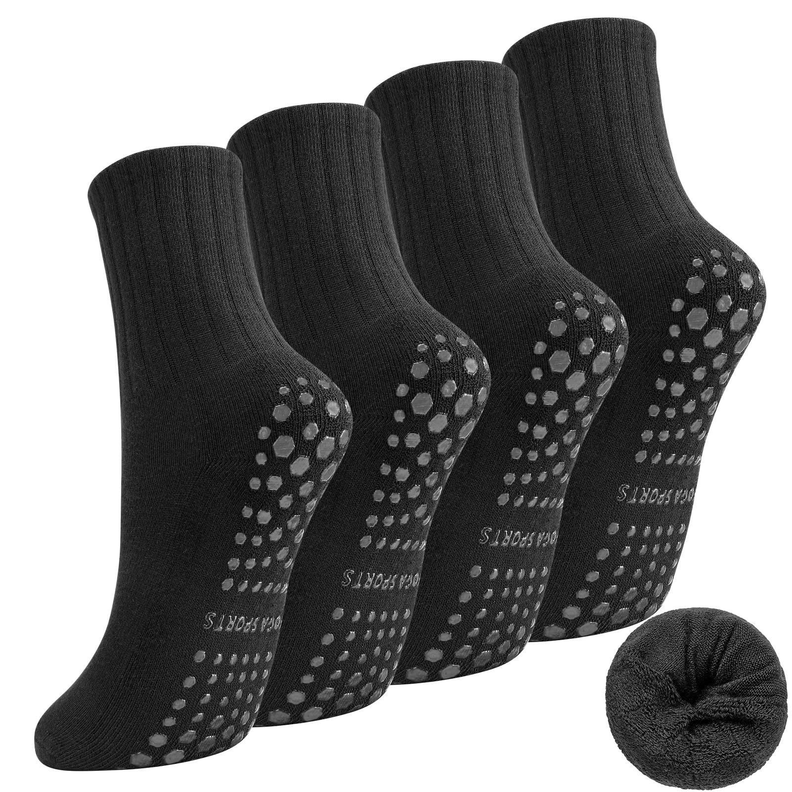Lot de 4 paires de chaussettes de pilates antidérapantes pour femme - Chaussettes antidérapantes pour pilates, barre de ballet, danse, fitness, trampoline - 35-39, Noir , 35-39