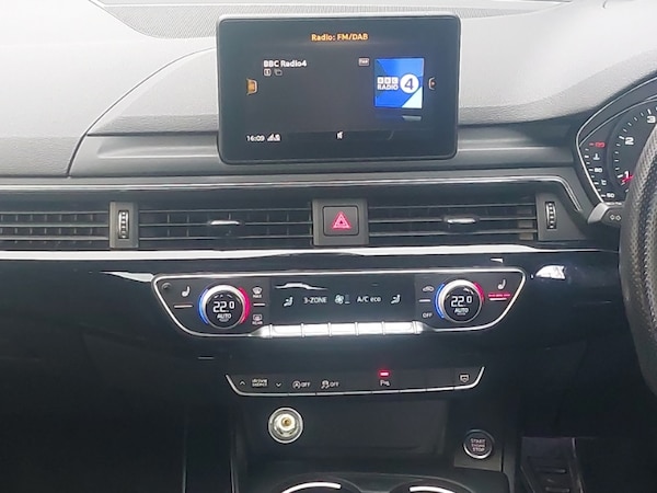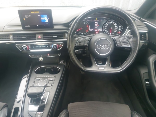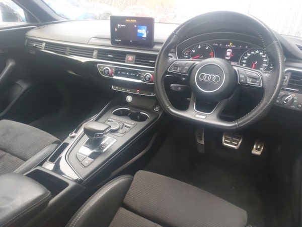 Apple CarPlay, Android Auto, LED daytime running lights, Rear parking sensor, Auto boot lid opening, Audi smartphone interface, Audi Pre sense collision avoidance, Audi parking system plus with front and rear sensors, Audi drive select, Audi connect, MMI SD card Navigation, Voice control system, Colour driver's information system display, Auto dimming rear view mirror, Automatic headlights + automatic windscreen wipers, Front sport seats, Black styling pack - A4/S4, Non Smokers pack, S line exterior styling pack - A4 Saloon, First aid kit, Space saver spare wheel