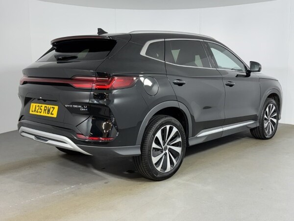Here at Lloyd BYD Carlisle we are thrilled to present this stunning BYD Seal U DM-i Boost, finished in eye-catching Black metallic paintwork and paired with a sophisticated Black Vegan Leather upholstery. New in May 2025, this Seal U has been well looked after by one previous owner with less than 6,500 miles on the clock, and comes with a Full Service History and 5-Star Safety Rating guaranteed. During preparation, this BYD has been meticulously cared for, undergoing our comprehensive AUC Vehicle Check & Road Test for enhanced peace of mind. This BYD benefits from an impressive performance line-up, making 215 horsepower and accelerating from 0-62mph in just 8.9 seconds with a top speed of 105mph. Electric range sits nicely around an average of 50 miles, with a combined fuel consumption of 51.4mpg, allowing you to enjoy efficient motoring where it matters most. Benefitting from the Boost trim level, enjoy a range of intelligent features to enhance your driving experience, with Adaptive Cruise Control, Apple CarPlay & Android Auto integration, Front & Rear Parking Sensors, a 360-Degree Camera and a Head-Up Display. These features all work together to create a cohesive and stress-free experience through the stunning 15.6'' touchscreen display, ensuring you get to where you need to be in the most efficient way possible. And with a boot that can accommodate 425 litres of storage alongside sleek Aluminium Roof Rails, this BYDs versatility is furthered even more, making it perfect for busy trips without compromising on performance. Finally, when it's time to sit back and enjoy the road ahead, benefit from a range of comfort-focused features such as Heated & Ventilated Front Seats, a Heated Multifunction Steering Wheel, a Panoramic Sunroof and stunning Infinity Sound System; all set in place to enhance your driving experience further. To enjoy a market-leading bundle of benefits ensuring peace of mind comes as standard, explore our used stock here at Lloyd BYD Carlisle. Take a test drive and fall in love with your next used BYD; it could be just around the corner.