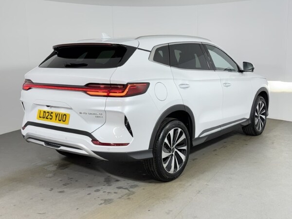 Here at Lloyd BYD Carlisle we are thrilled to present this stunning BYD Seal U DM-i Boost, finished in eye-catching Snow White metallic paintwork and paired with a sophisticated Black Vegan Leather upholstery. New in March 2025, this Seal U has been well looked after by one previous owner with less than 14,000 miles on the clock, and comes with a Full Service History and 5-Star Safety Rating guaranteed. During preparation, this BYD has been meticulously cared for, undergoing our comprehensive AUC Vehicle Check & Road Test for enhanced peace of mind. This BYD benefits from an impressive performance line-up, making 215 horsepower and accelerating from 0-62mph in just 8.9 seconds with a top speed of 105mph. Electric range sits nicely around an average of 50 miles, with a combined fuel consumption of 51.4mpg, allowing you to enjoy efficient motoring where it matters most. Benefitting from the Boost trim level, enjoy a range of intelligent features to enhance your driving experience, with Adaptive Cruise Control, Apple CarPlay & Android Auto integration, Front & Rear Parking Sensors, a 360-Degree Camera and a Head-Up Display. These features all work together to create a cohesive and stress-free experience through the stunning 15.6'' touchscreen display, ensuring you get to where you need to be in the most efficient way possible. And with a boot that can accommodate 425 litres of storage alongside sleek Aluminium Roof Rails, this BYDs versatility is furthered even more, making it perfect for busy trips without compromising on performance. Finally, when it's time to sit back and enjoy the road ahead, benefit from a range of comfort-focused features such as Heated & Ventilated Front Seats, a Heated Multifunction Steering Wheel, a Panoramic Sunroof and stunning Infinity Sound System; all set in place to enhance your driving experience further. To enjoy a market-leading bundle of benefits ensuring peace of mind comes as standard, explore our used stock here at Lloyd BYD Carlisle. Take a test drive and fall in love with your next used BYD; it could be just around the corner.