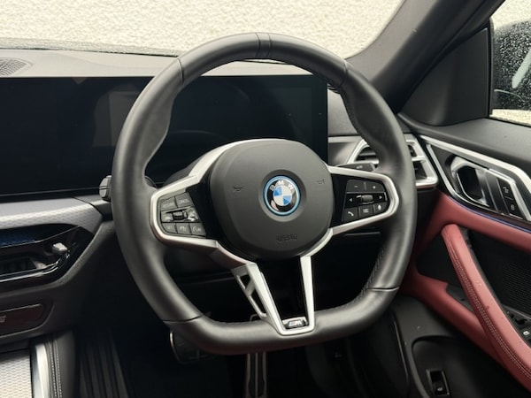Lloyd BMW Cockermouth are happy to present this exceptional BMW I4 eDrive40 M Sport finished in Black Sapphire paired with the lovely Tacora Red Sensatec Perforated upholstered interior trim. This example has been very well looked after and comes with a full BMW service history! This vehicle has covered just over 9,600 miles and comes equipped with some fantastic features! This all-electric Gran Coupe delivers a blend of performance and efficiency, offering up to 369 miles of electric range on a single charge and packing a punch with 335bhp, achieving 0-62mph in just 5.6 seconds. The M Sport Pro Pack enhances the driving experience further, complemented by M Sport Brakes with Red Calipers, M Sport Seat Belts and BMW Individual Lights Shadow Line. The interior boasts comfortable heated front seats, a Widescreen Display, along with the convenience of the Connected Package Pro and Parking Assistant. This vehicle also includes Adaptive LED Headlights with High-Beam Assistant for optimum visability.