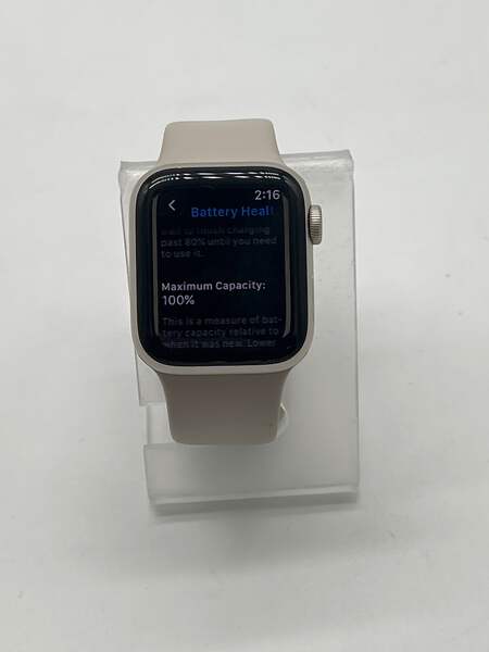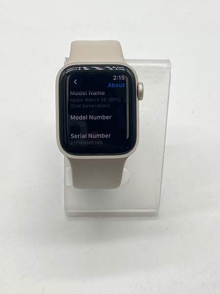This Apple Watch SE 2 shows some light scratches on the bezel and normal wear on the LCD, which is typical for a uséd device. Overall, it remains in good condition and is fully functional.