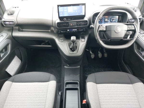 Wireless mirror screen with apple carplay and android auto, Rear parking sensor, 10"" HD touchscreen with voice recognition, Visibility pack - Berlingo, 10"" Fully digital drivers instrument display, Speed limit recognition and recommendation, Programmable cruise control and speed limiter, Extended traffic sign recognition, eCall emergency call system, Driver monitoring camera, Driver attention alert system, Citroen connect box emergency assist system, Bluetooth telephone facility, Active lane keeping assist, Diesel particulate filter, USB type C socket for charging and data functions, DAB Digital radio, 6 speakers radio with mp3 compatible, White strip in fog light surround and on lateral bodywork protectors, Twin sliding side doors, Shiny black door handles, Rear view mirror, LED Headlights, LED daytime running lights, Lateral bodywork protectors finished in black, Heated rear windscreen and wiper blade, Headlights left on audible warning, Front windscreen wiper with multi speed setting, 3rd brake light, Airbump, Automatic hazard light activation upon heavy brake application, Automatic headlights, Automatic intelligent beam headlights, Automatic triggered rear windscreen wiper in reverse gear, Black aero spoiler and door mirror caps, Body coloured front bumper, Chrome chevrons front grille, Electric front windows, Electric heated door mirrors, Front fog lights, Tray tables at the back of the front seats, Top box glove compartment, Standard grey interior ambiance, Single front passenger seat, Retractable parcel shelf, Metropolitan cloth upholstery, Height adjustable driver seat with adjustable lumbar support and elbow rest, Gear shift indicator, Full width front overhead storage shelf, Front optimised height adjustable safety headrests, Front interior light with 2 reading spotlights and rear interior light with timer, Foldable passenger seat with elbow rest, Fixing rings 4 in load compartment, Electric power steering with reach and rake adjustable steering column, Driver and passenger dashboard mounted cup holders, 2 independent and removable sliding / tiltable third row seats with headrests, 12V socket, Tyre pressure sensor, Front/rear disc brakes, Front three point retractable seatbelts with force limiters, Front and rear seats seatbelt unfastened on the move audible and visual alert, Front and rear curtain airbags, Forward collision alert, 3x Isofix child seat fittings in the second row, 3x3 point rear seatbelts, Active safety brake, Adaptive driver
