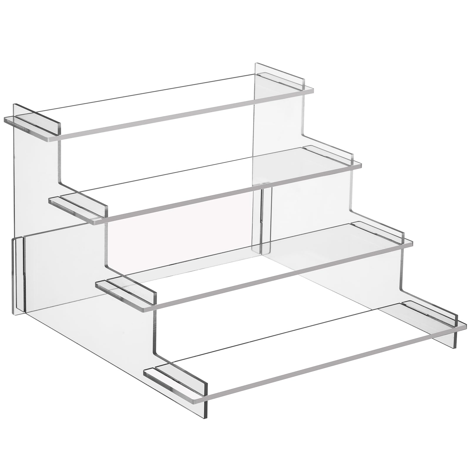 Display More Things: SIZE: Every acrylic panel is 9.5 IN long and 2.3 IN wide, the height of each tier is 1.6 IN. 4 tier cupcake stand is simple design and solid. Acrylic cupcake stand 4 tier features 4 layers that provides enough space to cologne perfume, cosmetic, skincare lotion, Amiibo Funko POP Figure, dessert, cupcake risers, collectibles and etc
