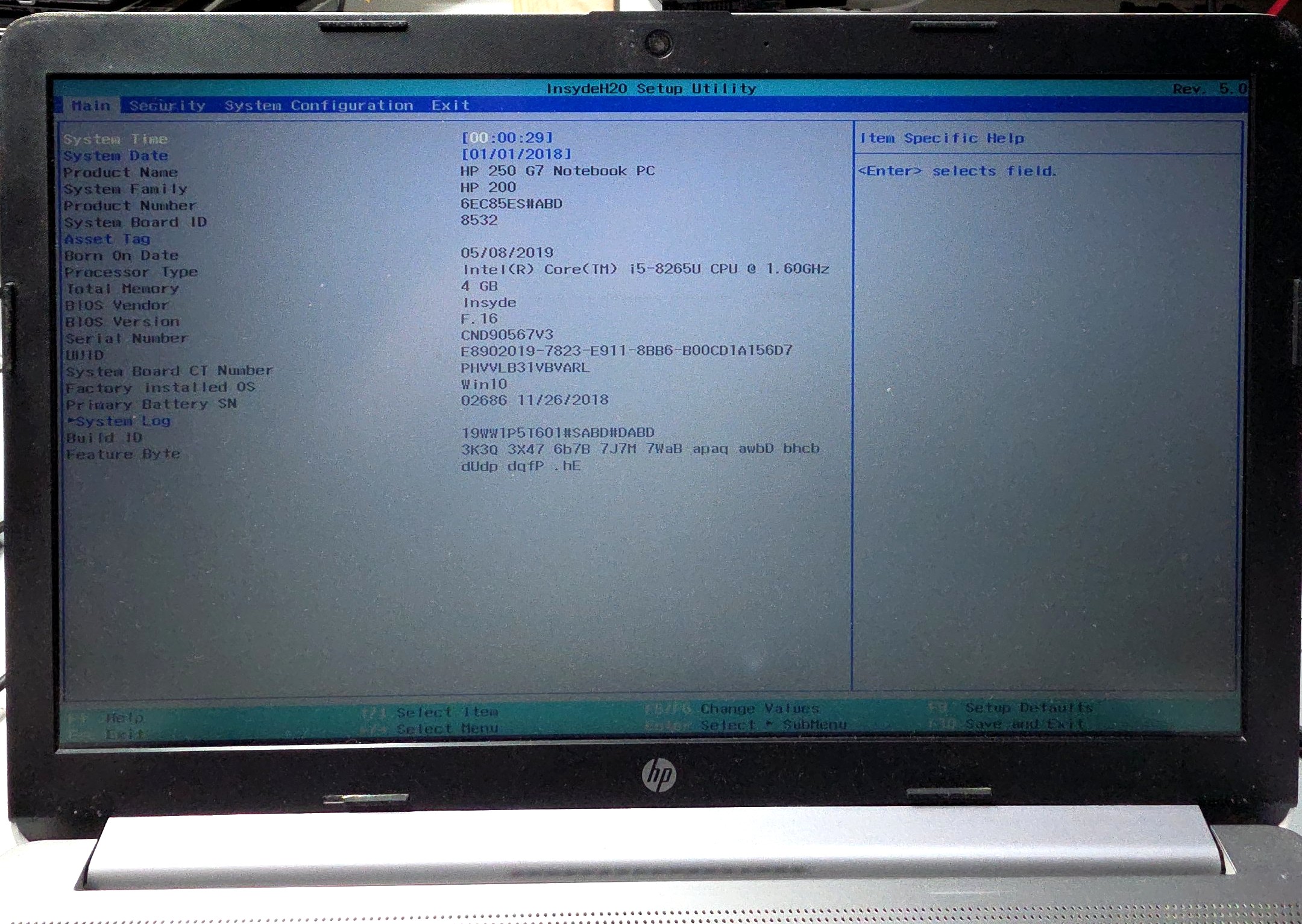 HP Notebook 250 G7 Motherboard Mainboard Intel Core i5-8265U LA-G07FP