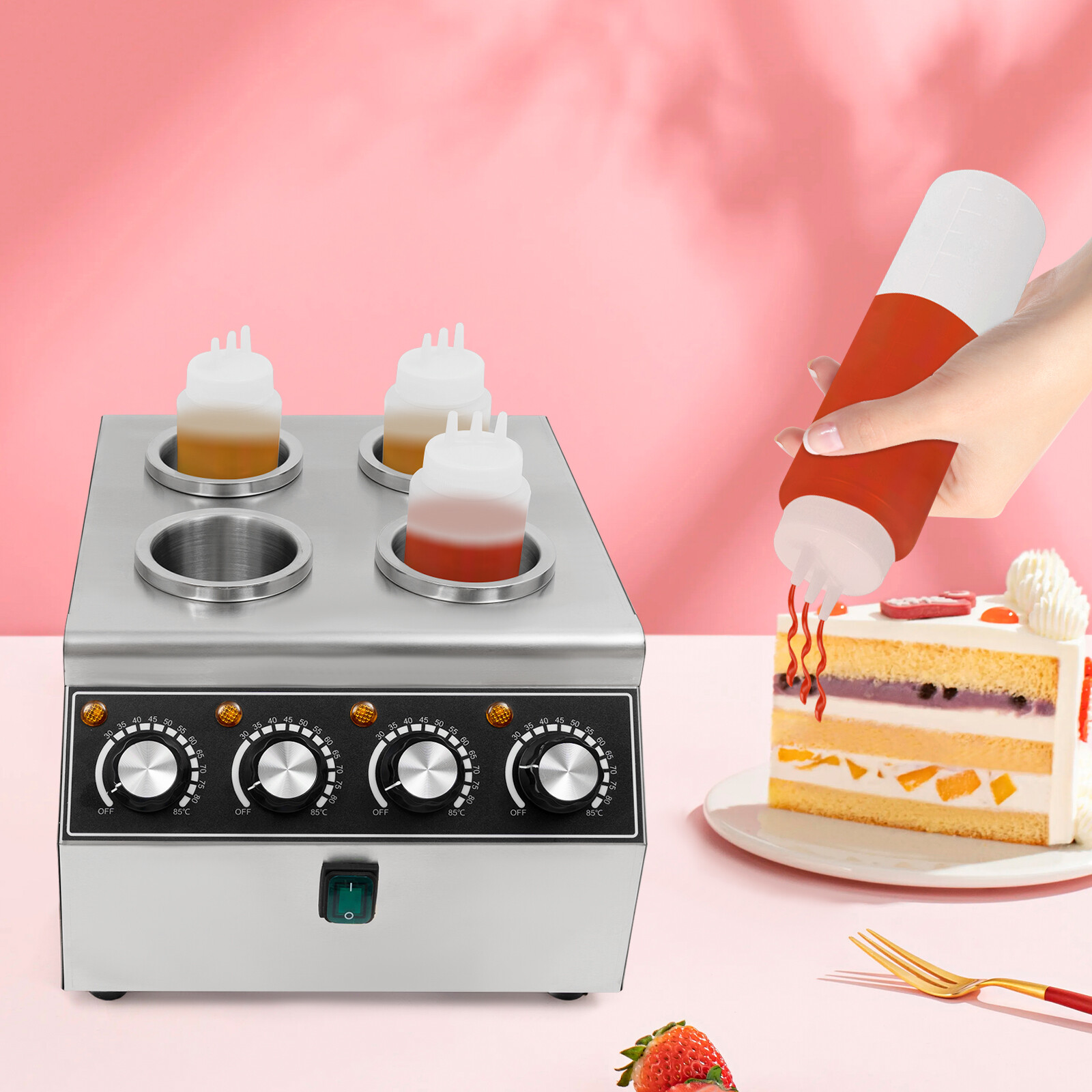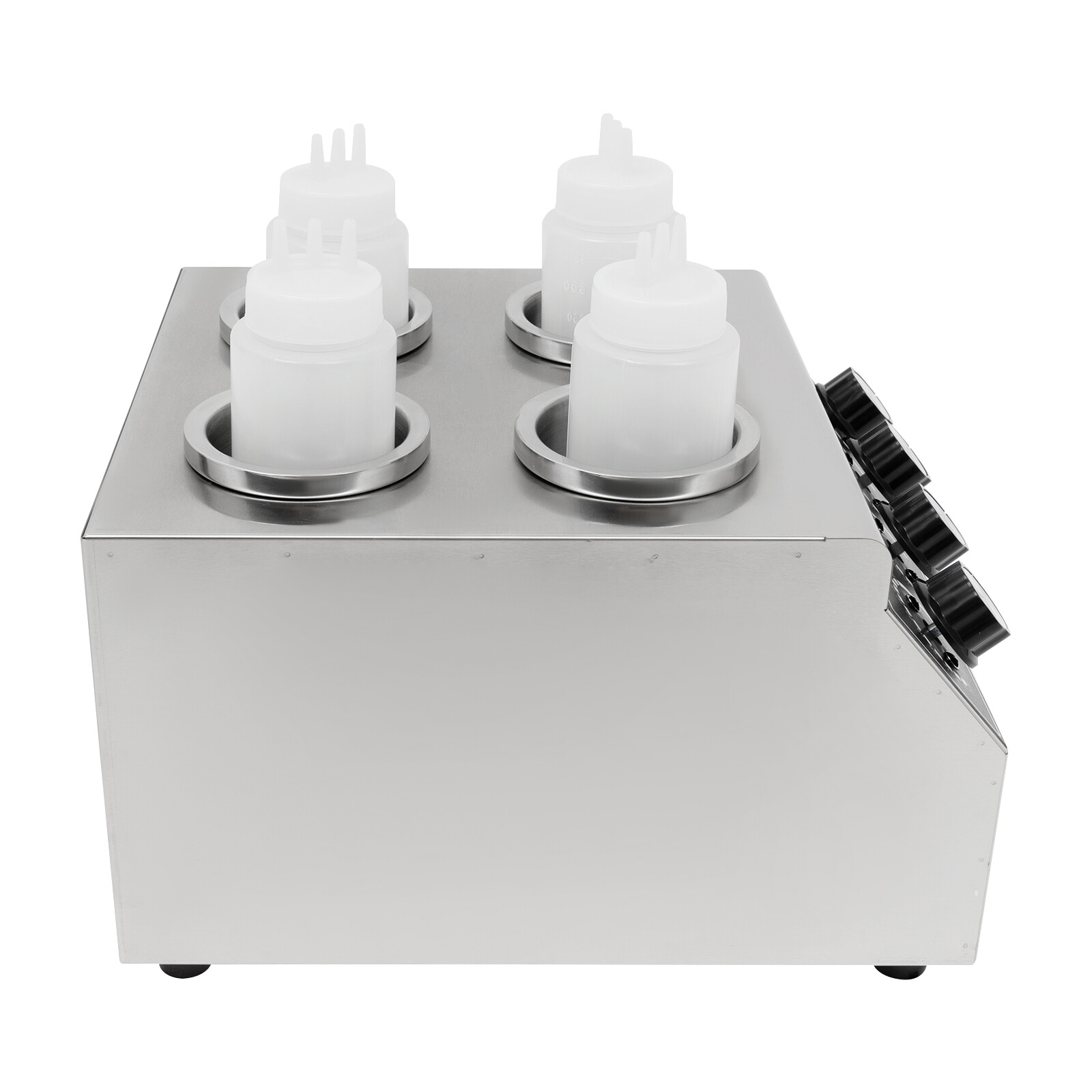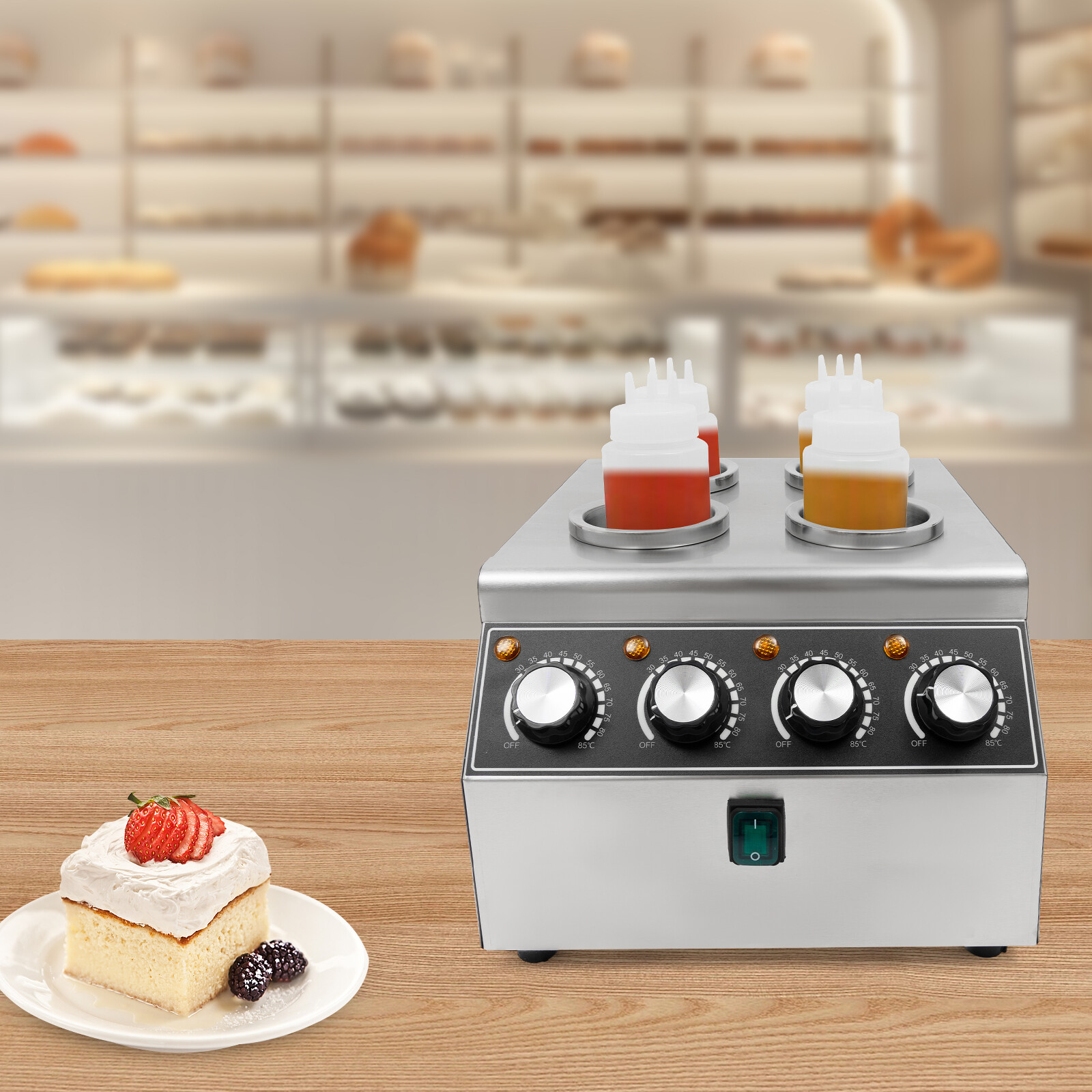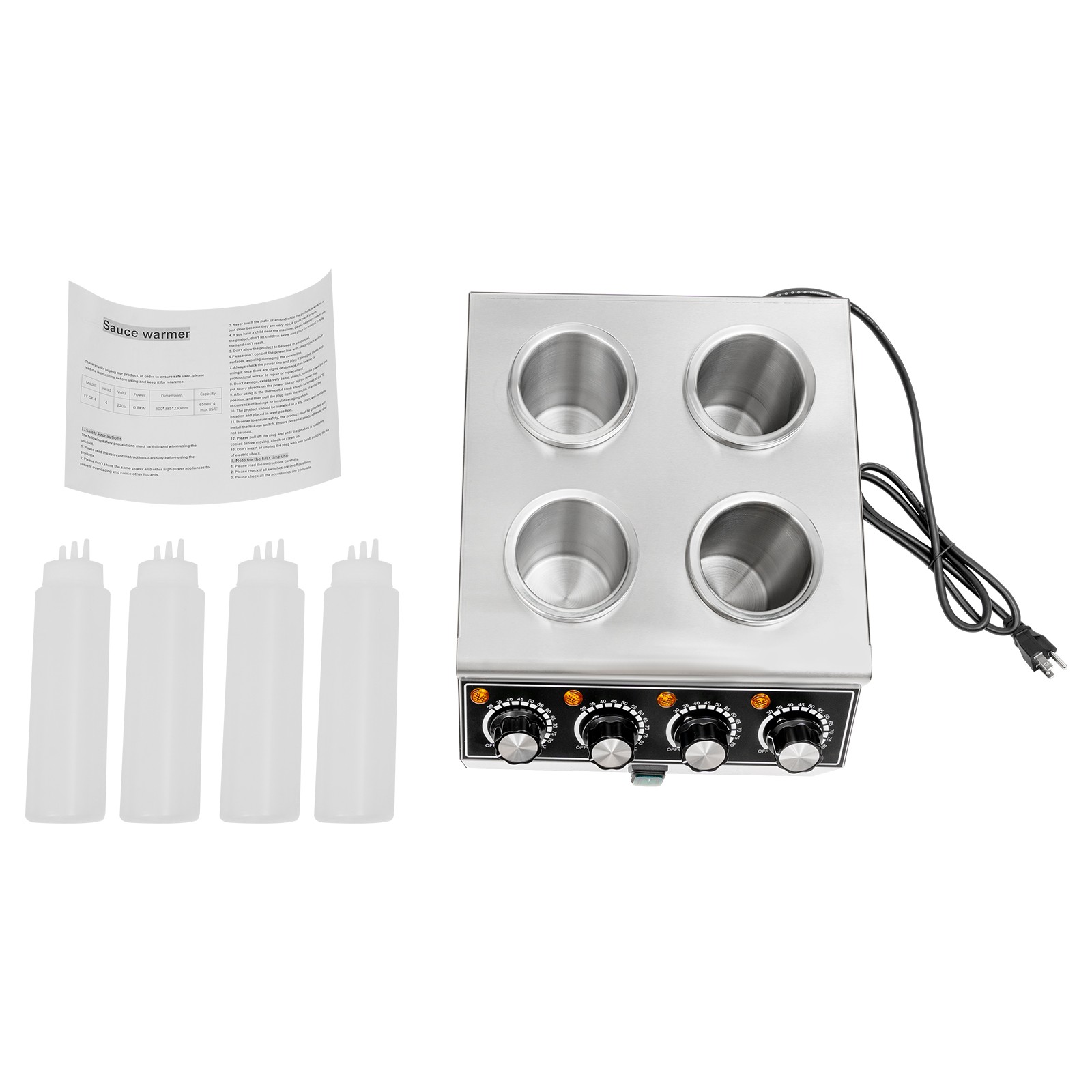 This product keeps various sauces warm, such as mayonnaise, salad dressing, ketchup, chocolate sauce, cheese sauce, barbecue sauce, teriyaki sauce, etc. It is suitable for use in commercial kitchens, cafeterias, restaurants, bakeries, fast food chains, convenience stores, cafes, parties, concession stands, movie nights, carnivals, and vending carts.