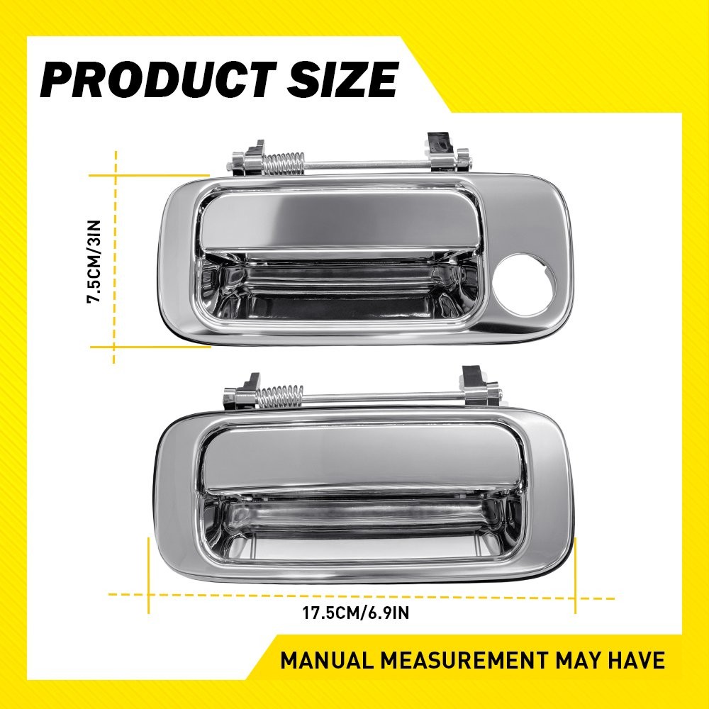 Specifications: OE Numbers: 69210-60010, 69220-60010, 69230-60010, 69240-60010 Product Material: Plastic Product Color: Chrome (as pictures show) Placement on Vehicle: Front, Rear, Left, Right, Exterior Door Packaging Weight: 683 g Packaging Dimensions (cm): 28.5 x 15.5 x 11