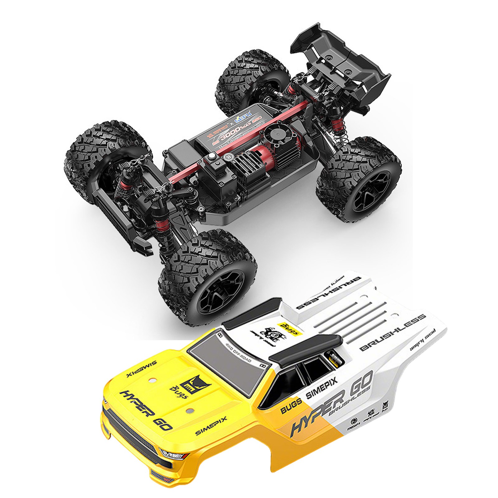 HIGH-SPEED 1:14 SCALE RC CAR β 55 KM/H, BRUSHLESS MOTOR, 2 BODIES