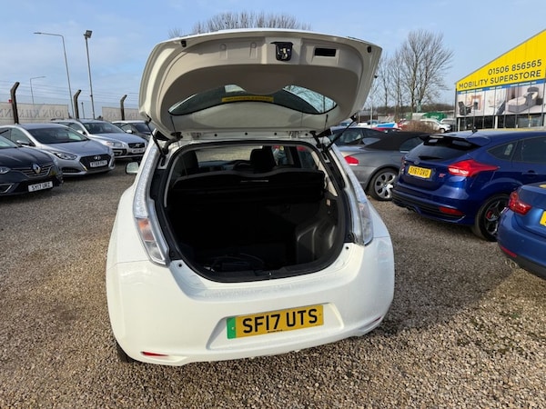 This 2017 Nissan Leaf 24kWh Visia is a low mileage electric automatic hatchback offering simple affordable and reliable electric motoring. With only 29104 miles this car is ideal for commuting city driving or anyone looking to reduce running costs without sacrificing comfort or practicality. The electric motor produces smooth quiet performance with instant torque making it effortless to drive in traffic and around town. The automatic transmission adds to the relaxed driving experience while regenerative braking helps maximise efficiency. The interior is well equipped and comfortable featuring automatic climate control Bluetooth telephone integration USB and AUX connectivity steering wheel mounted audio controls and a clear easy to use dashboard layout. The rear seats fold 60 40 providing flexibility for shopping luggage or everyday use. Charging is straightforward and flexible. The car is supplied with a 3 pin EVSE home charging cable along with a Type 2 cable for public charging points. It also benefits from a rapid charge port allowing up to 50kW DC charging where available which can significantly reduce charging times on longer journeys. Safety features include ABS traction control electronic stability programme hill start assist ISOFIX child seat points multiple airbags tyre pressure monitoring system and vehicle sound for pedestrians to improve awareness at low speeds. This vehicle comes fully serviced includes a fresh 12 months MOT and is supplied with a 6 month parts and labour warranty for added peace of mind. The car drives exactly as it should and is ready to drive away today. Part exchange may be considered and test drives or inspections are welcome..Only 29104 Miles Electric Automatic, Rapid Charge Port with Type 2 Cable, Bluetooth Climate Control USB, Fully Serviced 12 Months MOT, 6 Months Parts and Labour Warranty, 12V Socket, 16in Steel Wheels, 2 Front 3 Point Seat Belts with Height Adjusted - Double Pretensioner Load Limiter and Reminder, 3 Rear 3 Point Seat Belts with Emergency Locking Retractor - ISOFIX x2, 3.3kW Charger, 60-40 Split Rear Folding Seats, 7 Pin Mode 3 Type 2 Cable, ABS with EBD and Brake Assist, AM-FM-CD Audio System, AUX Socket for MP3 Player, Air Conditioning - Automatic, Alarm - Thatcham, Auto Air Conditioning with Rear Duct, Black Door Mirrors, Bluetooth Telephone Integration, Body Coloured Front and Rear Bumper, Charge Port Illumination and Remote Open Switch, Daytime Running Lights, Deadlocking, Door Handles - Chrome, Door-Boot Open Warning Light, Driver-Passenger-Side and Curtain Airbags, ESP - Electronic Stability Programme, EVSE Cable - 3 Pin - 10 Amp, EVSE Lock Link to CDL, Eco Driving Mode, Eco Meter, Electric Speed-Sensitive Power Steering, Electrically Adjustable Door Mirrors, External Temperature Sensor, Front Fog Lights, Front Laminated UV Reducing Green Glass, Front Seat Belts with Load Limiter and Pretensioners, Front and Rear Electric Windows, Full Wheel Trims, Glovebox, Grey Front Centre Console with 2 Cup Holders, Halogen Headlamps, Head Restraints - 3 Rear, Head Restraints - Front, Heated Rear Windscreen, Height Adjustable Driver Seat, Hill Start Assist, IMS - Instant Mobility System, ISOFIX Child Seat Anchoring Points, Immobiliser, Nissan Intelligent Key with Engine Start Button, PTC Heater - 5Kw, Pollen Filter, Rapid Charge Port - Allowing 50kW DC Charging, Rear Door Child Locks, Rear Green Glass, Rear Hand Grip with Coat Hanger, Rear Wiper, Safety Kit, Seat Belt Reminder - Front, Speakers x4, Steering Wheel Mounted Audio Controls, TPMS - Tyre Pressure Monitoring System, Tilt Adjustable Steering Wheel, Traction Control, USB - iPod Connectivity, VSP - Vehicle Sound for Pedestrians