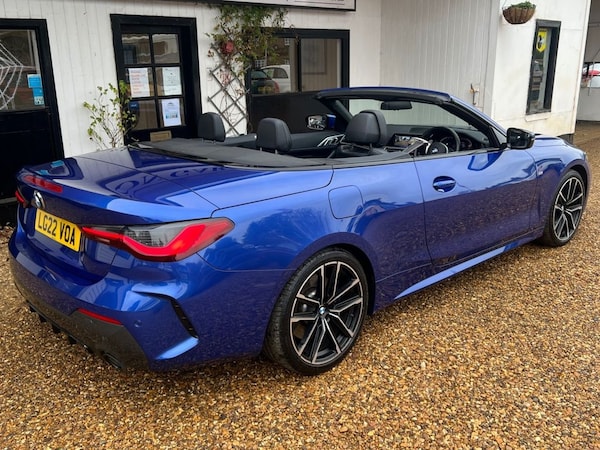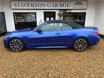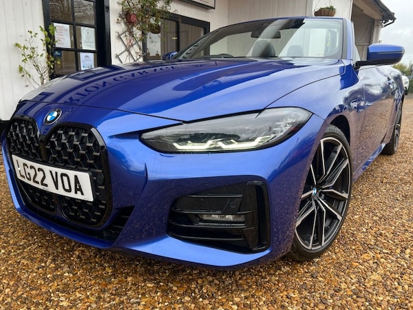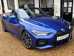 Experience the thrill of the open road with the BMW 420i M Sport Pro Automatic Convertible. This premium two-door convertible perfectly blends dynamic performance, stunning M Sport styling, and the sheer joy of top-down driving. With its athletic stance, agile handling, and the luxurious M Sport Pro enhancements, this is a car designed for those who demand excitement and elegance in equal measure. At its heart, the 420i is powered by a refined 2.0-litre, four-cylinder turbocharged petrol engine, delivering a responsive 181 horsepower and 206 Nm of torque. Paired with an 8-speed automatic Steptronic transmission, the drive is seamless, with paddle shifters for a more engaged, manual feel. The rear-wheel-drive setup and near-perfect 50:50 weight distribution provide an involving and balanced driving experience that is true to BMWs heritage. This is a one owner example and is serviced up to date ready for you to take delivery. The specification includes beautiful Portimao Blue paintwork complimented by Vernasca Black Leather with Blue stitching. The specification includes a Comfort Pack, Warm Air Collar, Heated Steering Wheel, BMW Individual Lighting - Shadowline, M-Sport Blue Brake Calipers, a Wind Deflector and M-Sport Pro Pack. Just wow... We are also a Supagard Dealer so for the special price of just £199 you can protect your investment - Exterior: The tough, high gloss barrier bonds to the paintwork, seals the surface against harmful UV rays, acid rain and atmospheric pollution. Interior: The upholstery & carpet are coated with a resin based formula which eases the removal of dirt and spills. This prevents staining while preserving the texture and appearance of the material. We have a wonderful range of vehicles for you to see; every car on our Website has a minimum of 30 images - see more at Control with Warm Air Collar, DAB / Apple car Play / USB, 19" Alloy Wheels, 8 Speed Auto with Paddle Shift, M-Sport Pro Pack, 12V Power Socket in Front Centre Console, 18in Alloy Wheels - Double Spoke Style - 848 Bicolour Jet Black, Active Guard Plus, Air Conditioning - Automatic with Three-Zone, Airbags, Alarm System - Thatcham 1 with Remote Control and Engine Immobiliser, Ambient Lighting with Welcome Light Carpet, Armrest - Integrated in Door Trim Front and Rear and in Front on the Centre Console, Attentiveness Assistant, BMW Connected Package Professional, BMW ConnectedDrive Online Services, BMW Emblem on Engine Compartment Lid and Tailgate, BMW Emergency Call, BMW Kidney Grille with Mesh Grille - Front Side of the Nuggets in Matt Aluminium and Frame in Chrome High-Gloss, BMW Live Cockpit Professional, BMW Mobility Kit, BMW TeleServices, Battery Safety Cut-Off in the Event of an Accident, Bluetooth Hands-Free Facility with USB Audio Interface and Audio Streaming, Brake Energy Regeneration, Brake Pad Wear Indicator - Front and Rear, Bumper System - Front and Rear, Central Locking Switch for All Doors - Fuel Filler Cap - Luggage Compartment, Centre Armrest For Rear Seats - Include Two Cup Holders, Centre Console Rear Storage Compartment, Check Control Warning System for Monitoring of Lights and Door-Luggage Compartment Open Warning, Child Proof Locking System - Rear Doors, Child Seat ISOFIX Attachment for the Two Outer Rear Seats, Condition Based Service, Crash Sensor, Cruise Control with Brake Function, Cup Holders in Centre Console - Front - 2 Cupholder Inserts with Clamping Elements - Inlay Matt Black, DAB Digital Radio, DSC - Dynamic Stability Control Plus, Deletion Lumbar Support-Width Adjustment Passenger Side, Door Exit Lighting - Front and Rear - Left-Right, Door Pockets - Front and Rear, Door Sill Finishers Front - Aluminium - with BMW Designation, Drive Performance Control with ECO PRO - Comfort and Sport Modes, Driving Experience Modes, Dynamic Brake Lights, EPS - Electric Power Steering, Electric Memory Seats, Electric Windows - Front and Rear - Drivers Side for All 4 Windows - Anti-Trap Facility, Electro Mechanical Parking Brake With Automatic Drive-Away Release and Auto-Hold Function, Exhaust Tailpipes - Split Left and Right - 90mm Diameter, Exterior Mirrors - Electrically Folding with Anti Dazzle, Exterior Trim - High-Gloss Shadowline, First Aid Kit and Warning Triangle, Floor Mats - Velour, Footwell Lights - Front and Rear, F