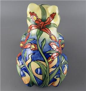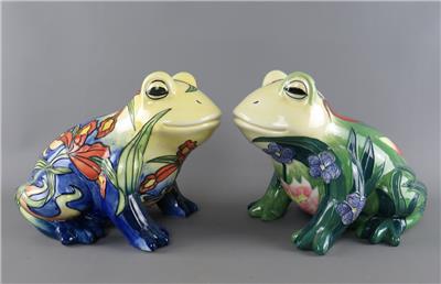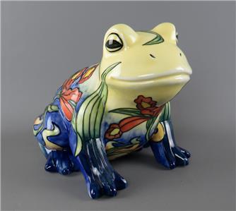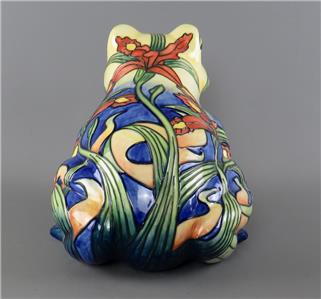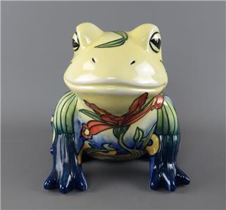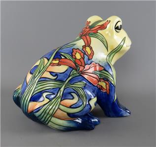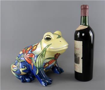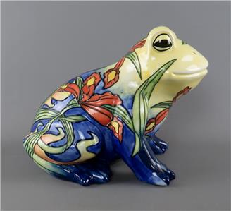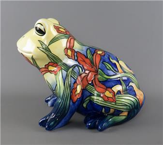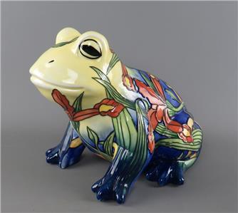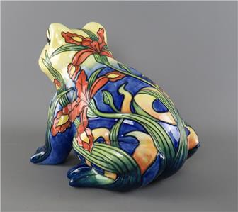 A large vintage ceramic Country Artists 'Inspirations' collection tube lined and hand painted frog figurine with an Iris or Lily flower decoration, the underside with the gilt 'Country Artists, Inspirations, Licensed by Willow Hall, 2003' backstamp and with the gilt printed monogram 'LP', circa 2003, unboxed