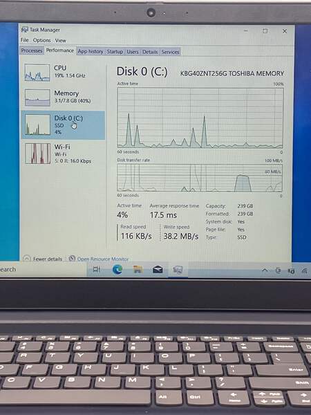 The screen has faint, minor scratches that are only visible under certain lighting or close inspection. The back case shows moderate signs of wear, such as light scratches, scuffs, or minor dents. The keyboard is in good condition with minimal signs of wear.