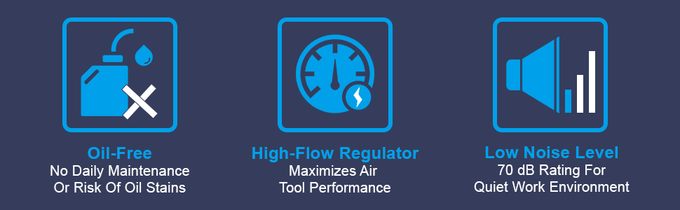 The advanced oil-free design eliminates the need for oil changes and provides clean, contaminant-free airflow. It ensures long service life and reliable cold-weather starting, perfect for year-round use.