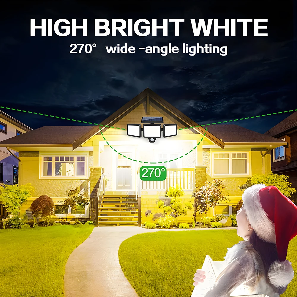【Super Bright Solar Motion Sensor Lights】:The solar outdoor lights equipped with 210 super bright LED beads, produce up to 2500 lm 6500 K high brightness output and good heat dissipation. Perfectly illuminate your courtyard, garage, swimming pool.
