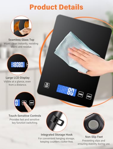【Large Gamme d’Applications】 : Pèse alimentaire électronique est fabriqué en plastique ABS durable et en panneaux de verre trempé, avec une surface imperméable et résistante aux taches. Sa surface lisse est facile à nettoyer et conçue pour durer, ce qui le rend idéal pour la maison, la cuisine, la pâtisserie et l’alimentation. Il convient également pour mesurer la farine, le café, la viande, les fruits, le lait, les bijoux et les petits paquets.