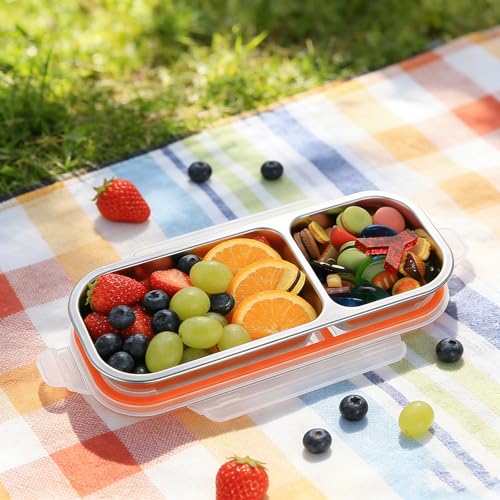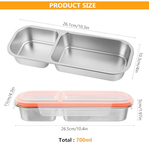 Bento Lunch Box, Boite Bento Box, Boite à Gouter Compartiments, Boîte à Goûter avec 2 Compartiments, Boîtes à Goûter Divisées en Acier Inoxydable avec Couvercle pour Travail et camping