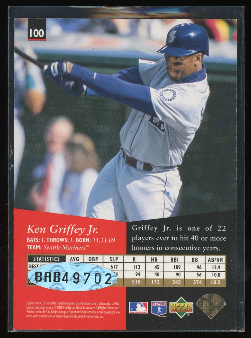Ken Griffey Jr. 1995 Upper Deck SP Auto #100 Seattle Mariners ON CARD Autograph