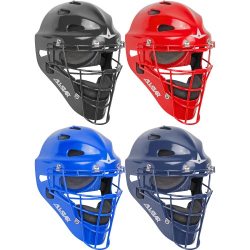 The All-Star Players Series Youth Catcher’s Helmet is designed to provide professional protection and comfort at a reasonable price. The Players Series Adult Catcher’s Helmet features a NOCSAE approved shell with a I-BAR vision mask the is designed for improved field of vision. The Players Series Catcher’s Helmet also features dual density foam liner that absorbs and disperses impact and a soft second layer moisture wicking material.