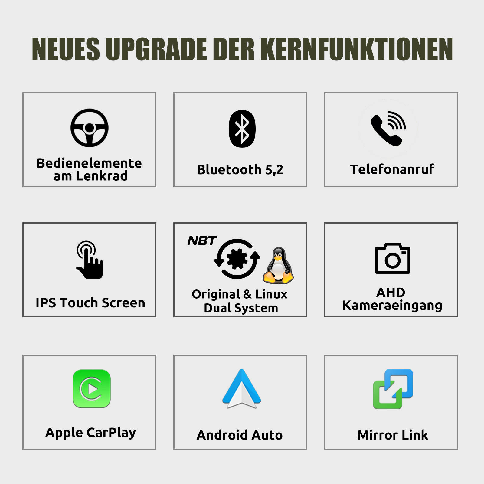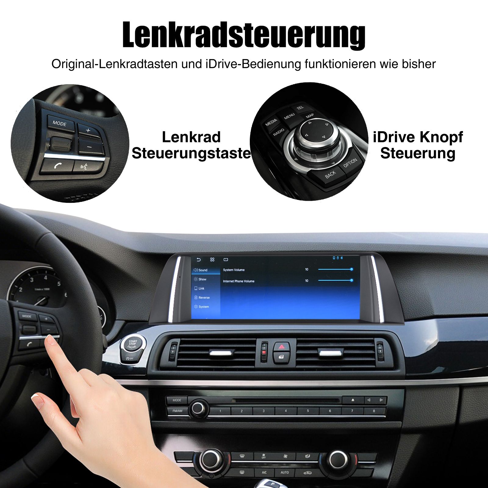 - Eingebauter Can-Bus-Decoder, kompatibel mit den meisten Lenkrad-Steuerungsfunktionen und Original-Auto-Idrive-Knopf.