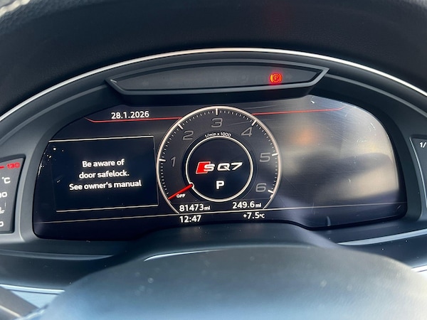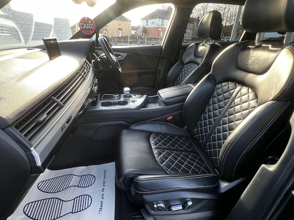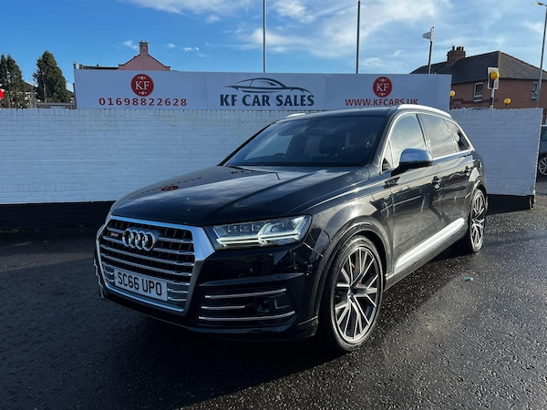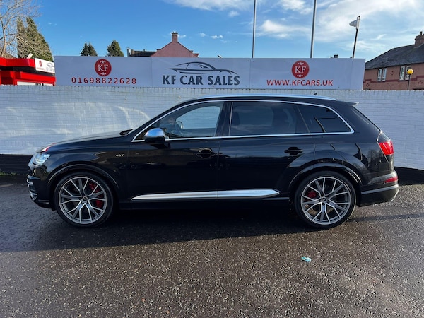This 2016 Audi SQ7 TDI V8 is a remarkable example, having had only one owner since new. This impressive seven seater SUV boasts a powerful 4.0 litre diesel engine, paired with a four wheel drive system for assured handling in all conditions. It meets Euro 6 emissions standards and is capable of towing up to 3500 kg. Inside, you'll find a luxurious cabin featuring Valcona Leather Sports Seats Plus in black, a full leather package, and a helpful head up display. The Dynamic Pack enhances its sporty character, while the City Pack includes blind spot assistance and a rear parking camera for added convenience and safety.Experience exhilarating performance with this SQ7, capable of accelerating from 0 to 60 mph in a swift 4.7 seconds. This rapid acceleration, combined with its advanced features and robust towing capacity, clearly sets it apart from other vehicles in its class. The combination of its potent V8 diesel engine, sophisticated four wheel drive, and comprehensive technology package makes this Audi SQ7 a truly compelling choice for those seeking both performance and practicality.