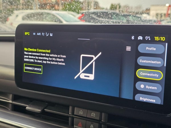..11kW - On Board Charger, 12V Power Outlet, 20in Alloy Wheels - Diamond Cut - Abarth Design - Hubcap with 225 - 40 R20 Tyres, 3rd Rear Headrest and Seatback Pockets, 6 Airbags, 6 Speaker Audio System, 7in TFT Full Digital Cluster, ABS - Anti-Lock Braking System, Abarth Lateral Sticker, Aero Spoiler, Anti-Thief Bolts, Anti-Thief Volumetric, Auto-Dimming Rear View Mirror - Frameless, Automatic Air Conditioning - 1 Zone, Autonomous Emergency Brake - AEB and Vulnerable Road User - VRU Protection, B-Pillars - Glossy Black, BSRF - Connectivity Box - Hardware, Black Door Mirror Covers, Cable - Mode 3 - Triphase, Connected Services, Door Handles - Black, Drowsy Driver Detection, Dusk and Rain Sensors, ECall Emergency Response System, EV - PHEV - Electrically Driven Temperature Control, EV Drive Mode Selector, EV- PHEV Fast Charging - 100kW, EV- PHEV Quick Charging, EV- PHEV Second Life Ready Battery, EV- PHEV Smart Charging, EV- PHEV Smart Charging Port, Electric Parking Brake - Auto Hold, Electronic Stability Control - ESC, Engine Sound Generator, Foldable 2nd Row Seats - 40 - 60 - Fix and Fold, Front Centre Armrest, Front Seat Backrest Pockets - Driver and Passenger, Front and Rear - Power Windows - Express Up-Down, Front and Rear Dome Lamp LED Touch, Front and Rear Sporty Bumper, Grab Handle - Front Passenger, ISOFIX Connections - 1st Row Passenger and 2nd Row, Internal Door Handles - Chrome, Kit - Fix and Go, Kit - Fix and Go Predisposition - Housing Only, Kit English, LED Daytime Running Lights - DRL, LED Foglamps with Cornering Function, LED Front Turn Indicator - Position Lights, LED Rear Lights, LED Reflector Headlamps, Lane Keeping Assist - LKA and Intelligent Speed Assistant - ISA, No Windows Management, Odometer - Miles, Pack Scorpion Tech, Pack Winter, Partial Body Cover For Shipment, Pedestrian Emergency Breaking, Predisposal For Tunnel Pad Cover - Dedicated Prnd Bezel, Rear Headrest, Scorpion Design Pack, Scorpionissima Side Stickers, Scorpionissma - Glossy Black Body Kit, Shark Fin Antenna - Glossy Black, Smart Storage Central Tunnel - 15L, Steering Wheel - 3 Spokes Sporty - Eco Leather - Alcantara with Scorpion Logo, Sun Visors with Vanity Mirror, USB 2nd - Charging 2-5A Type C, Uconnect Infotainment Touchscreen 10.25in with Integrated Navigation System and DAB - USB Type A and C on Tunnel, Wireless Apple Carplay and Android Auto