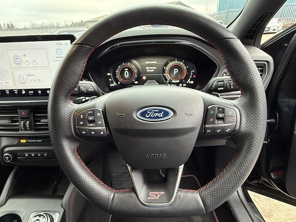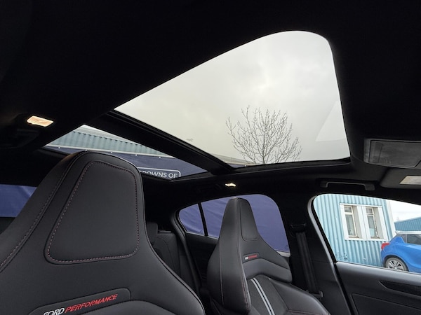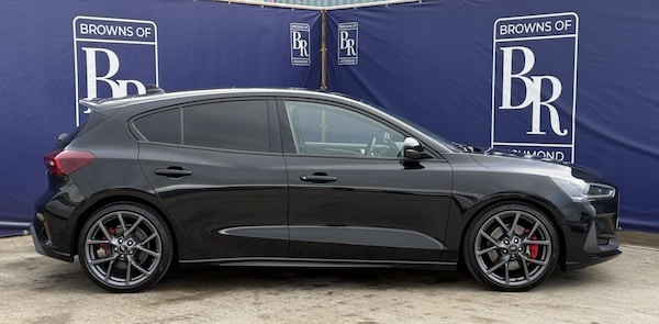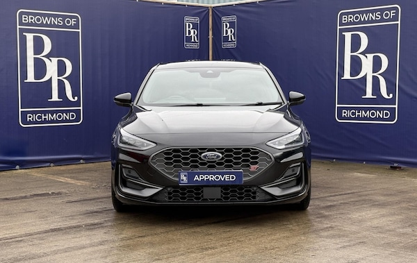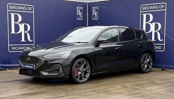 Browns of Richmond are delighted to offer this excellent 2023 Ford Focus ST, finished in striking Agate Black. The Focus ST continues to be one of the standout hot hatches on the market, offering genuine performance, everyday usability and strong levels of standard and optional equipment. This example has been lightly modified with a resonator delete, giving the car a deeper, fruitier exhaust note without being overbearing, perfectly complementing the ST's sporting character while retaining everyday drivability. Powered by Ford's turbocharged petrol engine, the Focus ST delivers strong performance with sharp throttle response and excellent mid range punch. The chassis is equally impressive, offering confident handling, strong grip and a planted feel that makes the ST just as enjoyable on a twisty road as it is on longer motorway journeys. This car is particularly well specified, benefitting from a number of desirable factory options. These include the Ford Performance Pack, Driver Assistance Pack, Blind Spot Information System, Head Up Display, Parking Pack, and the highly sought after openable panoramic glass roof, which adds light and a real sense of space to the cabin. Inside, the Focus ST offers a driver focused layout with supportive sports seats, clear digital displays and intuitive controls. The technology is easy to use, with navigation, media and driver aids seamlessly integrated to create a refined yet engaging driving environment. This vehicle benefits from a full service history, reflecting careful ownership and consistent maintenance. It has also been prepared for sale and passed our comprehensive 114 point inspection, ensuring it meets our standards before being offered to its next owner. At Browns of Richmond, we take pride in sourcing well maintained, well specified cars and presenting them correctly. Contact us today to arrange a test drive or to find out more. The advertised price is plus a £199 fee for the Browns Signature Care Package. Full details available at brownsofrichmond.co.uk/browns-signature-care.