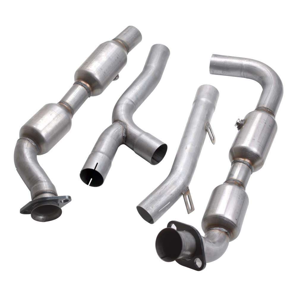 Specification: 53412(Left) Body Height: 4.25 in Body Length: 10 in Body Material: Stainless Steel Body Shape: Round And Standard Oval Body Width: 6.125 in California Air Resources Board (CARB) Certified: No Inlet Inside Diameter: 3 in Inlet Quantity: 1 Inlet Type: 2 Bolt Loose Flange With Spherical Flare Mounting Hardware Included: No Outlet Outside Diameter: 2.5 in Outlet Quantity: 1 Outlet Type: Pipe Connection Overall Length: 32.125 in 54407(Right) Body Height: 4.25 in Body Length: 10 in Body Material: Stainless Steel Body Shape: Round And Standard Oval Body Width: 6.125 in California Air Resources Board (CARB) Certified: No Inlet Inside Diameter: 2.5 in Inlet Quantity: 2 Inlet Type: Pipe Connection Mounting Hardware Included: No Outlet Outside Diameter: 2.5 in Outlet Quantity: 1 Outlet Type: Pipe Connection Overall Length: 44.875 in Features: EPA Compliant Direct fit for installation onto existing exhaust system. Hardware included. 100% new. Made from premium quality materials to meet orginal specifications. Precious metals and large substrate minimize pollutants in your exhaust Quality inspected and tested - high heat resistance, low emissions and sounds levels Special design for maximum flow increases the power and performance of your engine Fitment: 2001-2003 Ford F-150 4.2L(Only RWD) Package Included: 1x Left Catalytic Converter w/Installation Accessories 1x Right Catalytic Converter w/Installation Accessories Caution: Converters are designed to last the life of a vehicle. If your converter needs to be replaced it may be due to an emissions error/problem in your engine tuning. Converters that overheat due to engine problems may turn blue or bronze. These problems must be corrected BEFORE installation of a new converter. Any modifications of any kind will void all warranty coverage for this item. Warranty is voided if catalytic converter substrate is melted or broken; this is due to an issue with the car itself and not the catalytic converter. Due to its size and shape it may encounter cosmetic flaws during its stocking and shipping process. The powder coating finish is designed to add shelf life by minimizing surface scratches which may deteriorate over time due to temperatures reached once in use. Products damaged as a result of abuse, misuse, improper repair, improper installation, alteration or modification will not be covered by the warranty. O2 sensors must be replaced when you replace the converter or warranty will be void. We have determined that failure of either the front O2 sensor (the front wide-band sensor), also known as an Air-Fuel Ratio Sensor or the read downstream sensor, can trigger a false P0420 code. Both sensors should be replaced with you replaced the converter. Note: This product is not legal for sale or use in California, Colorado, New York and Maine due to state emissions regulations.