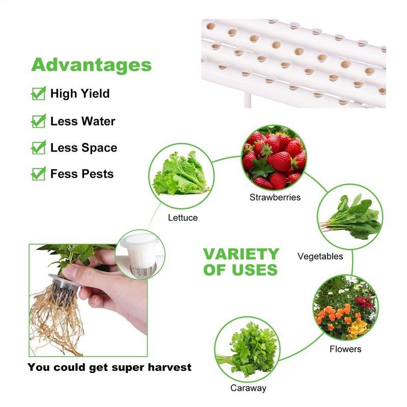Effortlessly Grow Vegetables: The hydroponics system, using PVC, ensures high-quality and safe vegetables, without seasonal restrictions. Grow and enjoy your own veggies conveniently at any time, while promoting a healthier and safer lifestyle