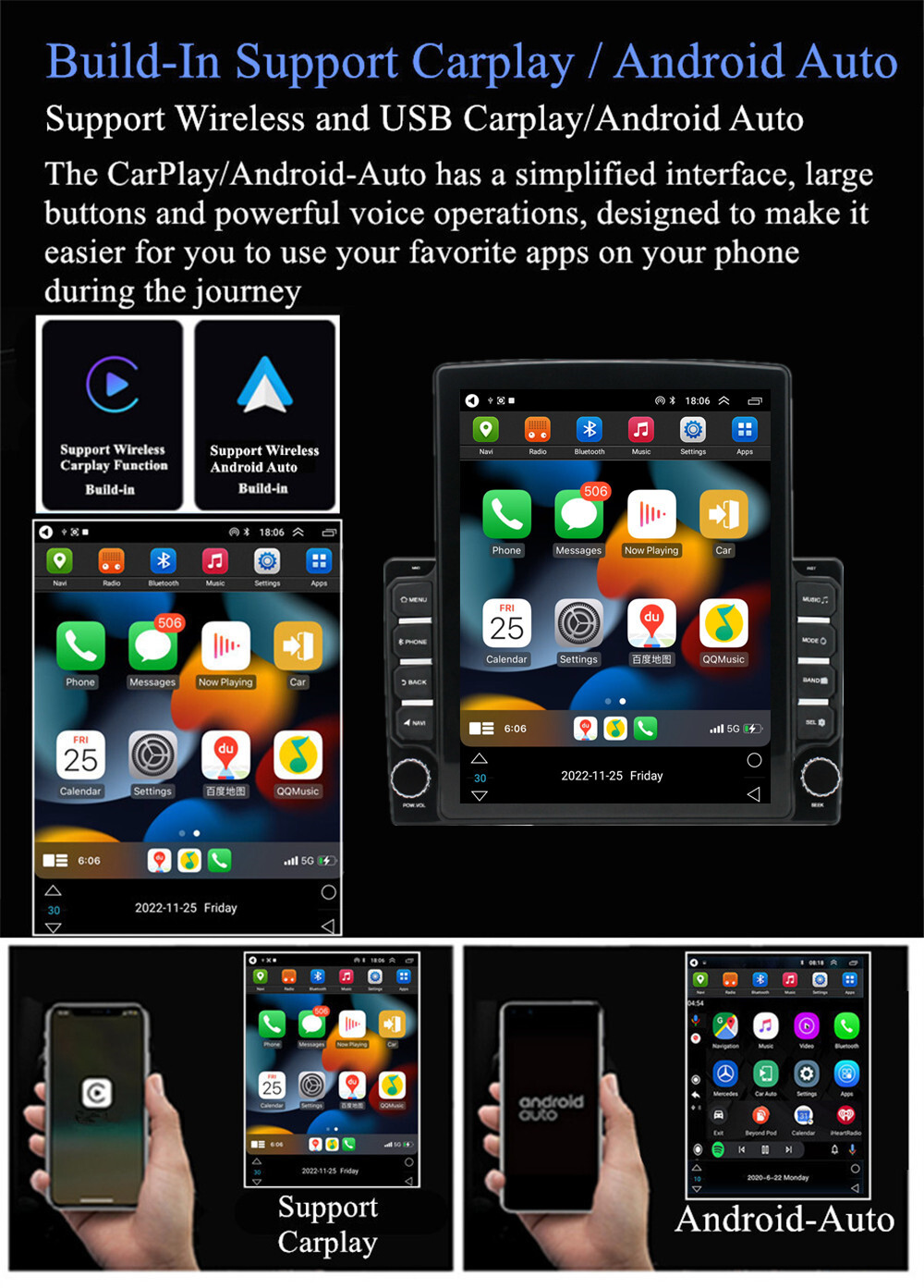 Support WIFI Wireless & USB Wired Carplay And Android Auto