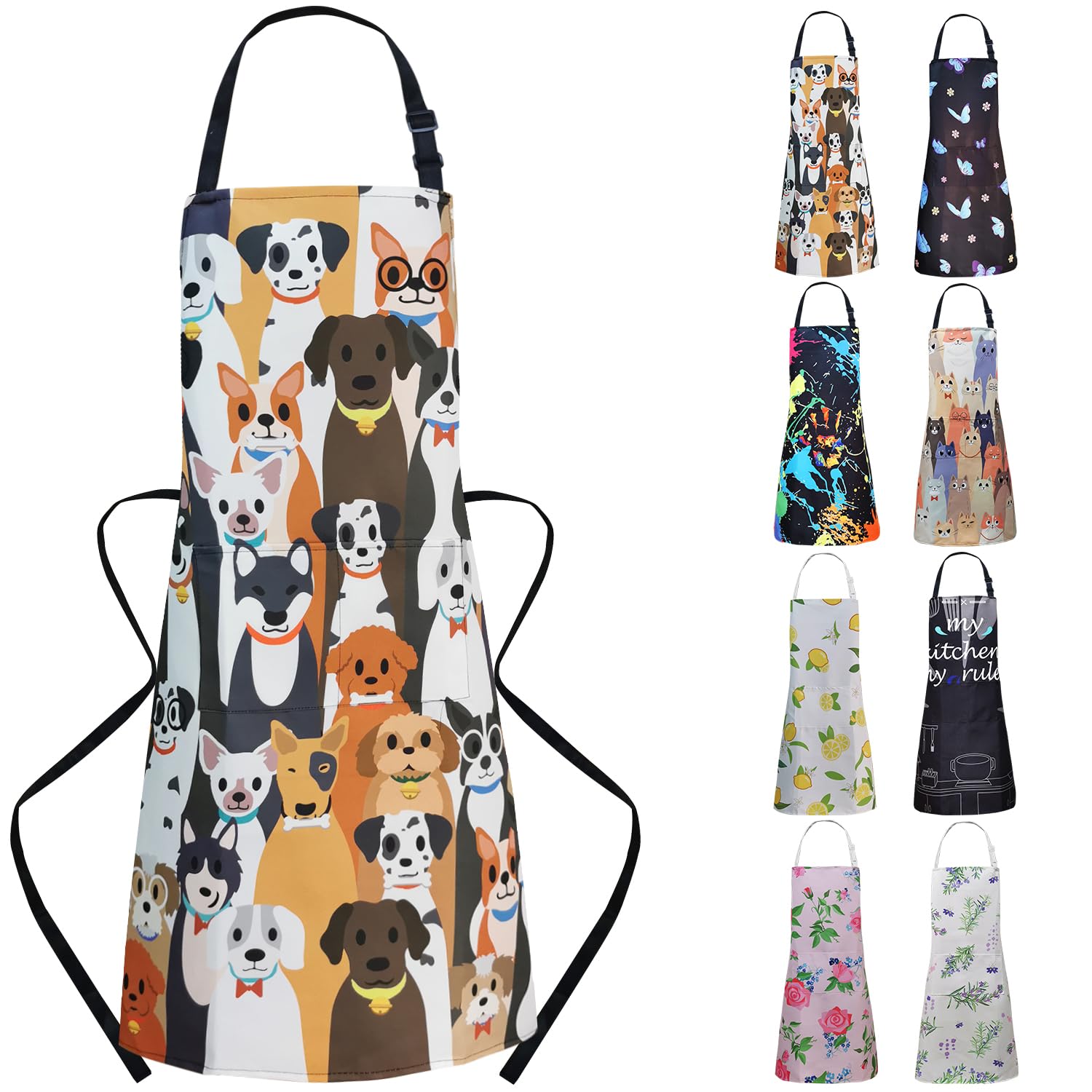 Adjustable Kitchen Apron with 2 Pockets, Waterproof Funny Cooking Chef Apron for Women Men, Gardening Baking Aprons, Grill BBQ Aprons Creative Gifts, Cute Animals Dog
