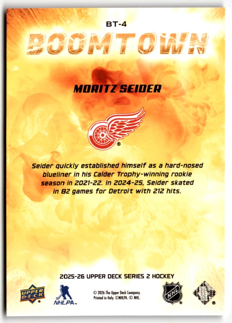 | Moritz Seider 2025-26 Upper Deck Boomtown #BT-4 Detroit Red Wings | ||||||||||||||||
