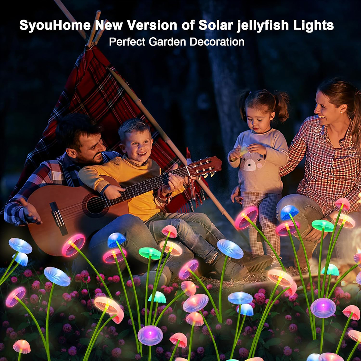 Decorative Mushroom Shape : These mushroom-shaped solar lights cast a warm, inviting glow that transforms patios, pathways, and garden areas into magical, relaxing spaces for family gatherings or quiet evenings outdoors