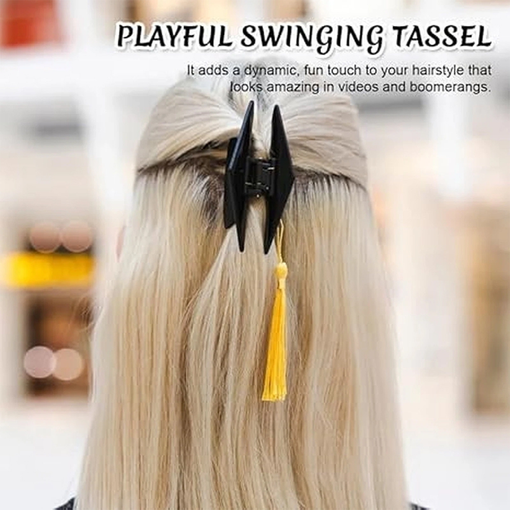 Classic black cap + gold tassel complements any outfit. Wear it on ponytails, half‑up styles, or as everyday jewelry to show off your grad pride.