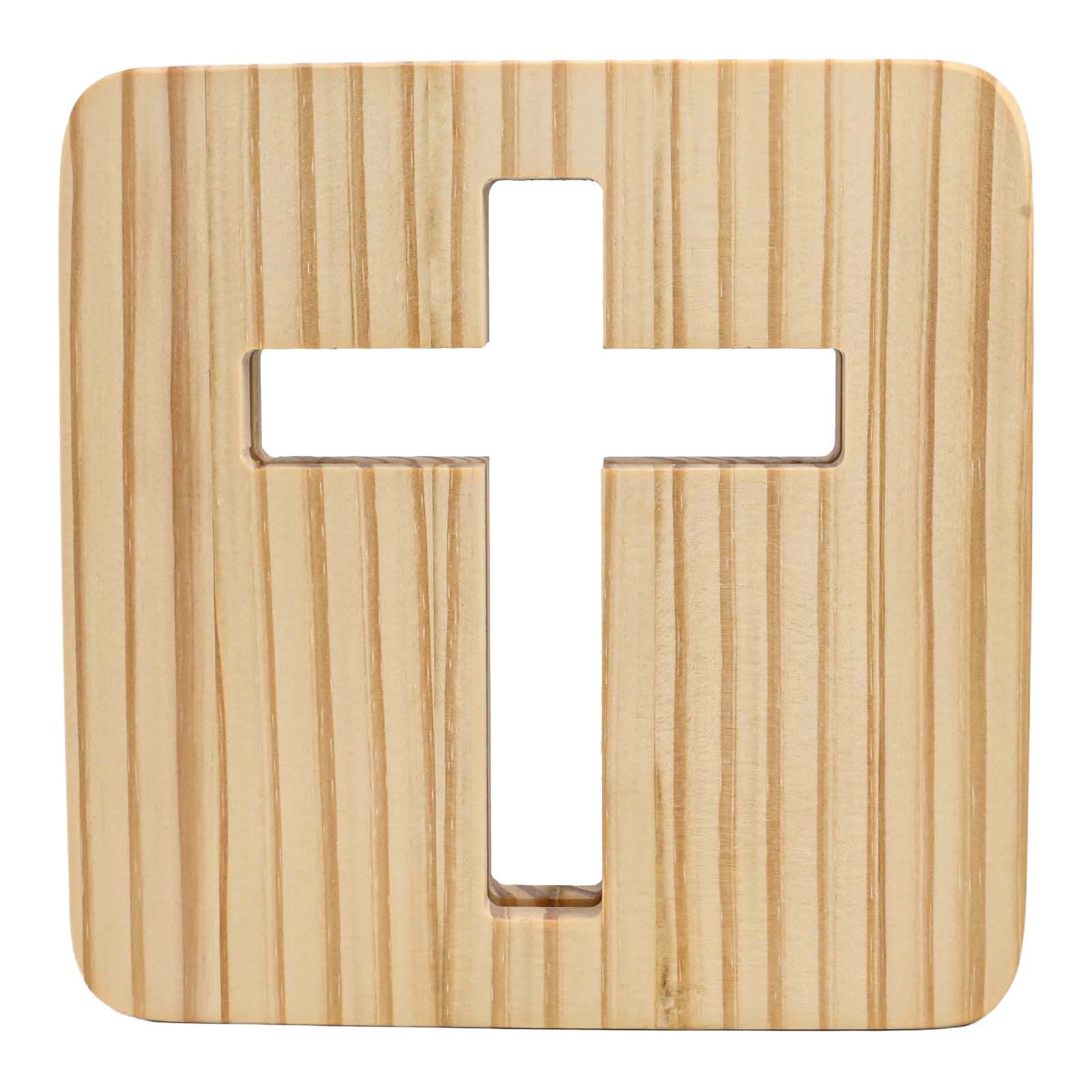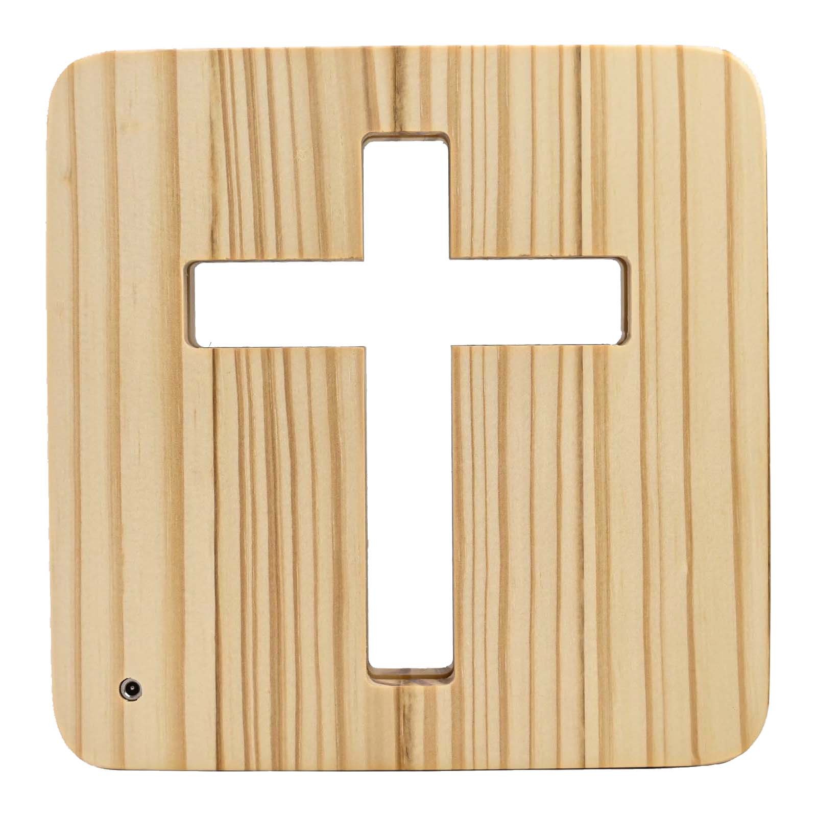 Lampe de Bureau Croix en Bois Massif Alimentée USB Veilleuse Créative 3D pour
