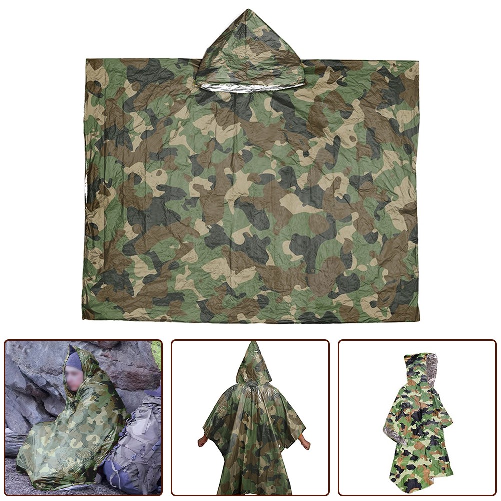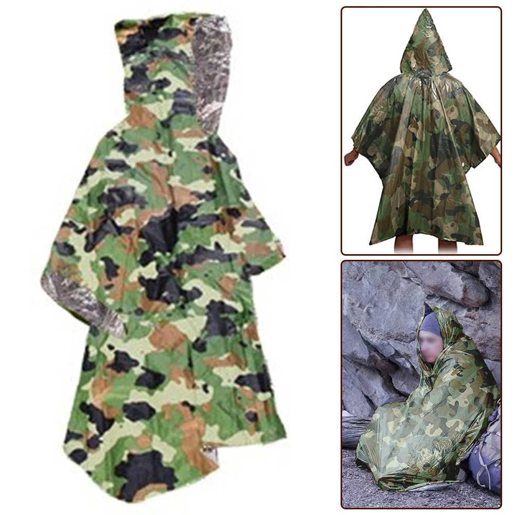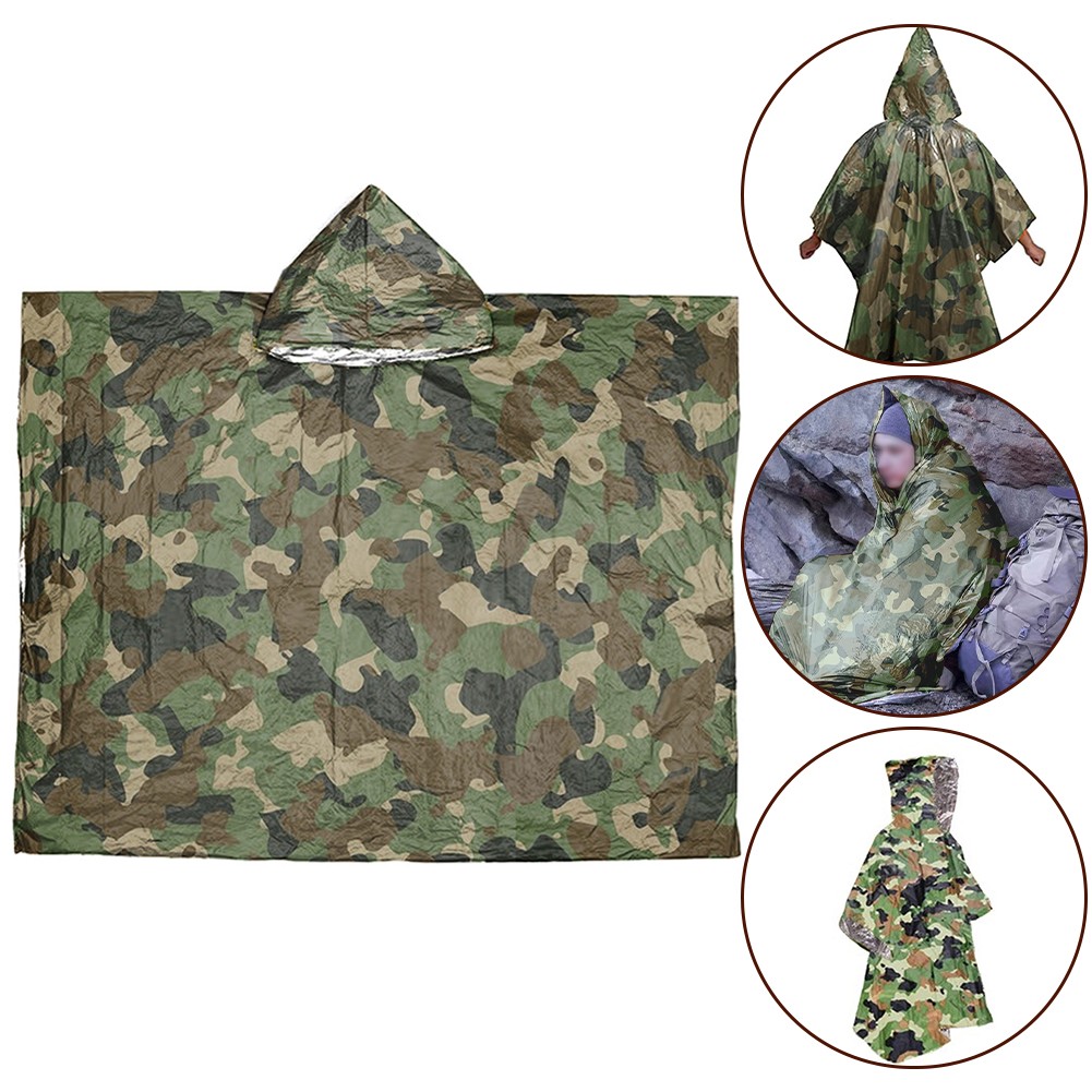 *Multifunctional camouflage raincoat that can be used as a raincoat, camping tent pad and awning.