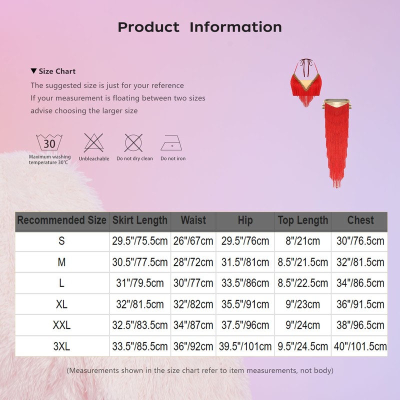 | Tag No. | Recommended Size | Skirt Length | Waist | Hip | Top Length | Chest |