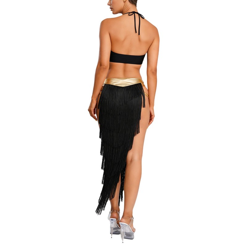 The tiered tassel design on the skirt creates a dynamic and flowing effect, enhancing the overall visual appeal and adding a sense of playfulness.