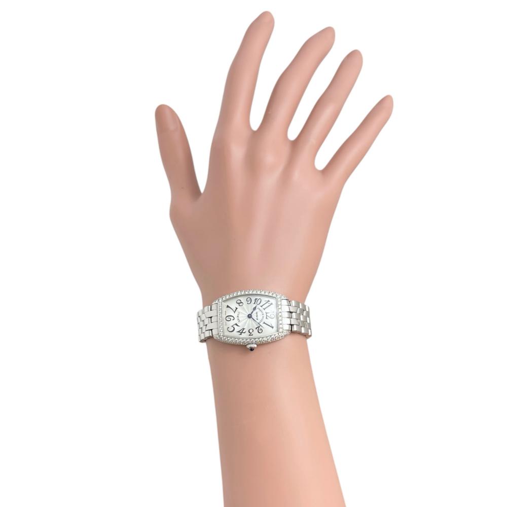 | Description | This highly recommended piece is set with high-quality diamonds, has a long tonneau curved bracelet, and is in good condition. |