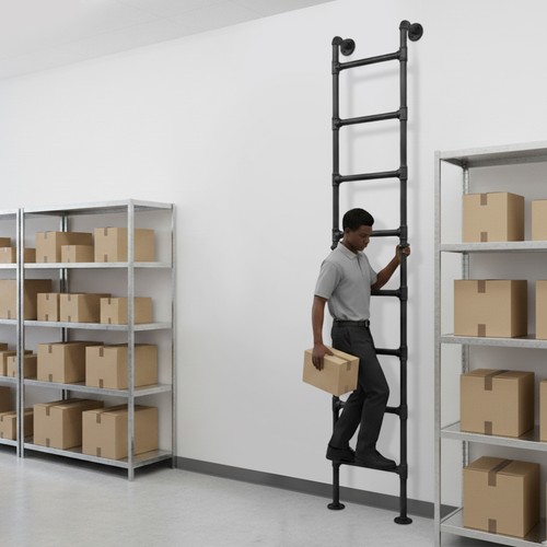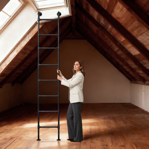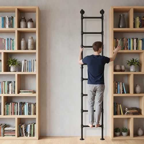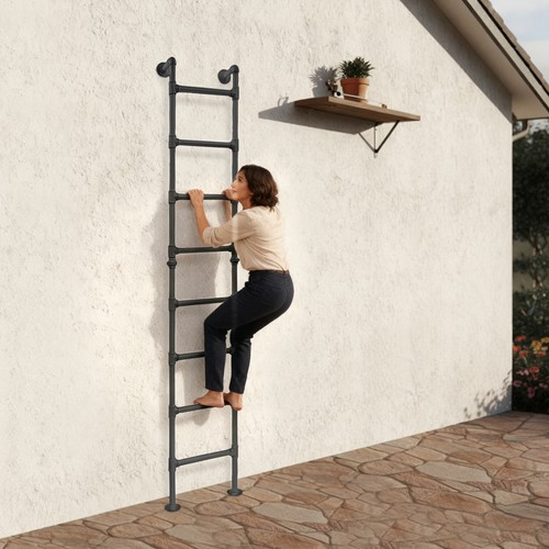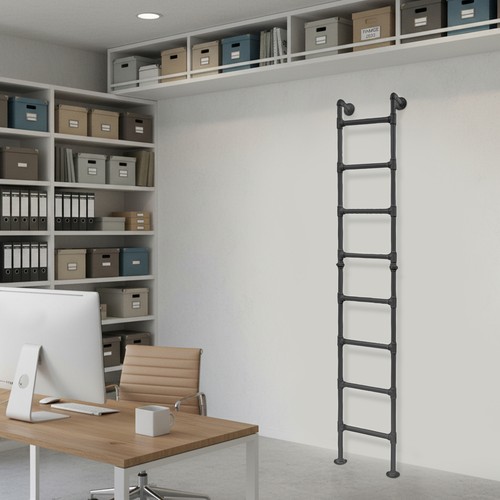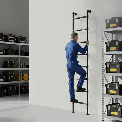 This 8-step ladder, built from sturdy iron tubing, blends a sleek, minimalist industrial look with practical performance. Ideal for reaching high shelves or loft areas, it also enhances modern interiors as a striking design piece. Its compact form enables straightforward installation, delivering space-efficient utility without sacrificing strength or visual appeal.