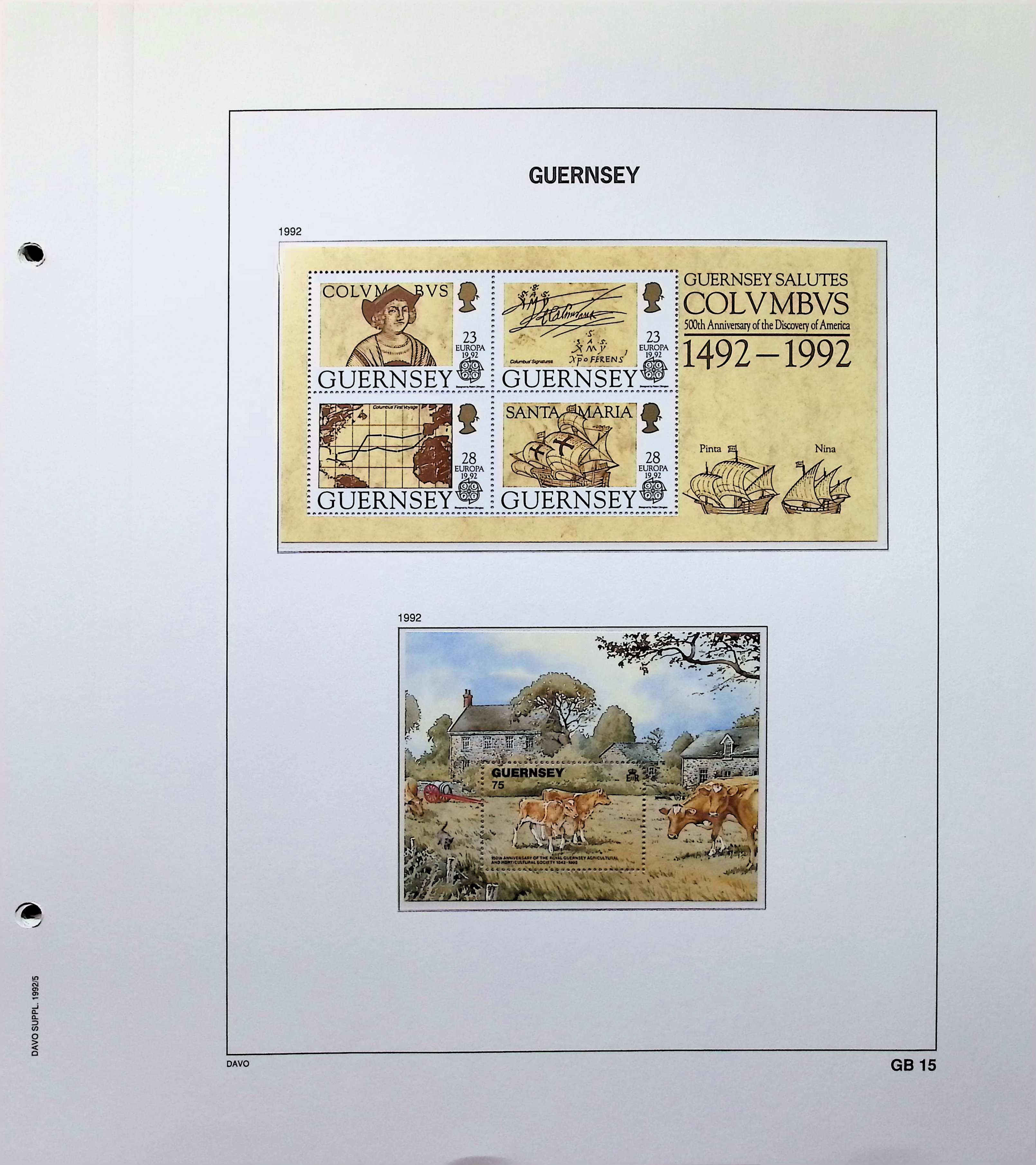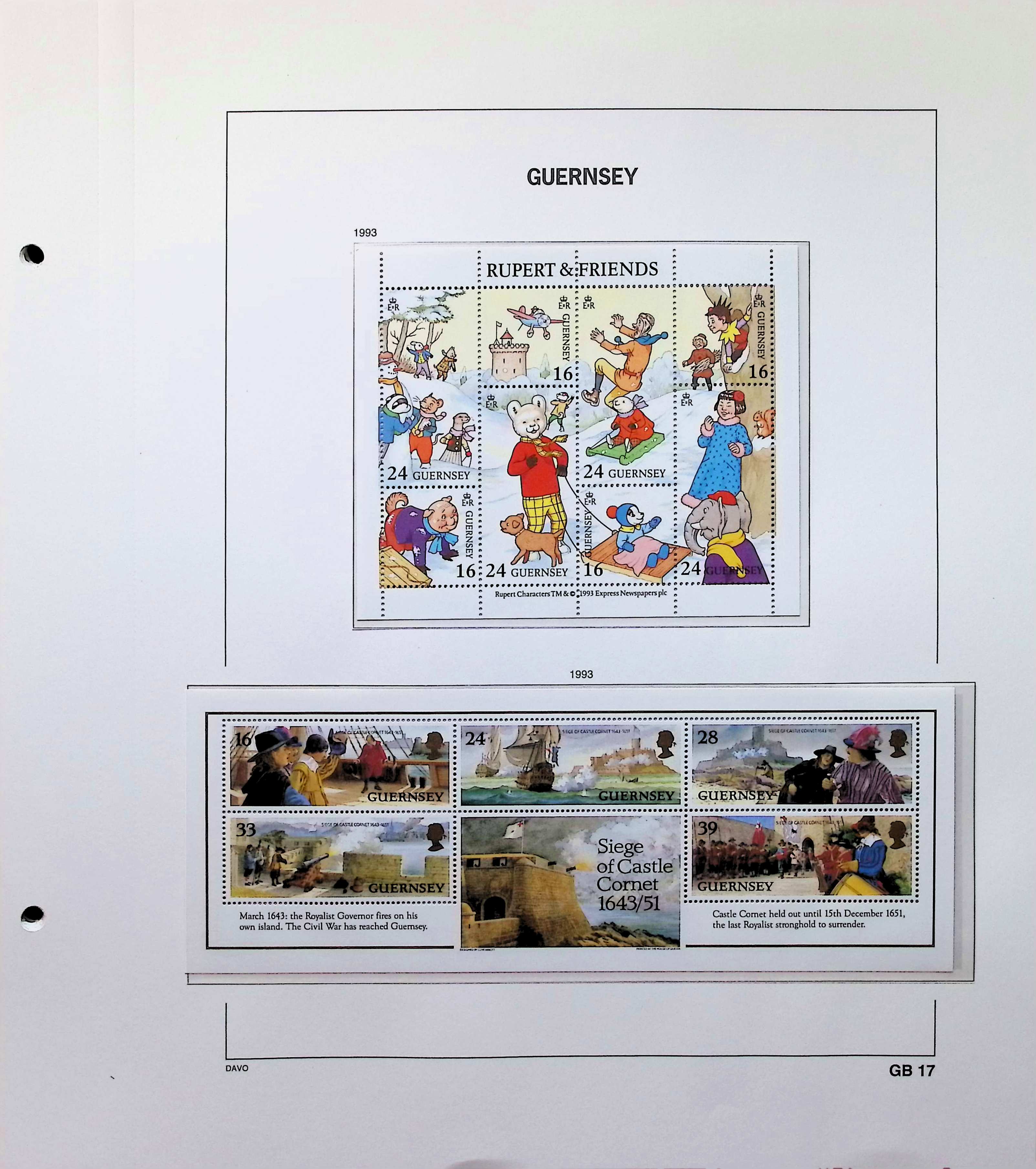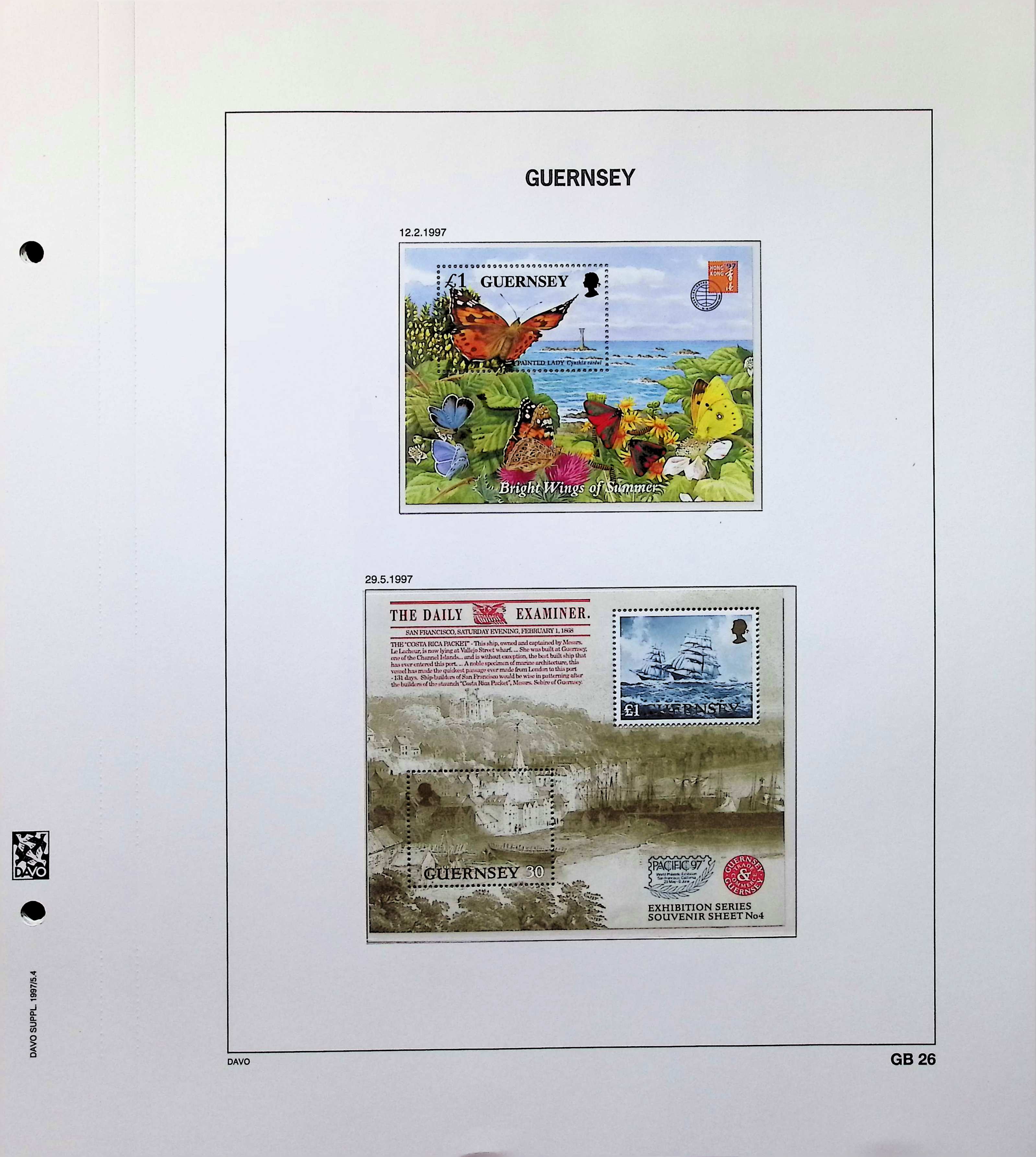 A collection of Guernsey souvenir sheets on Davo album pages running from 1990-1997. Also includes postage dues. All MNH and highly complete. Photos show actual item.
