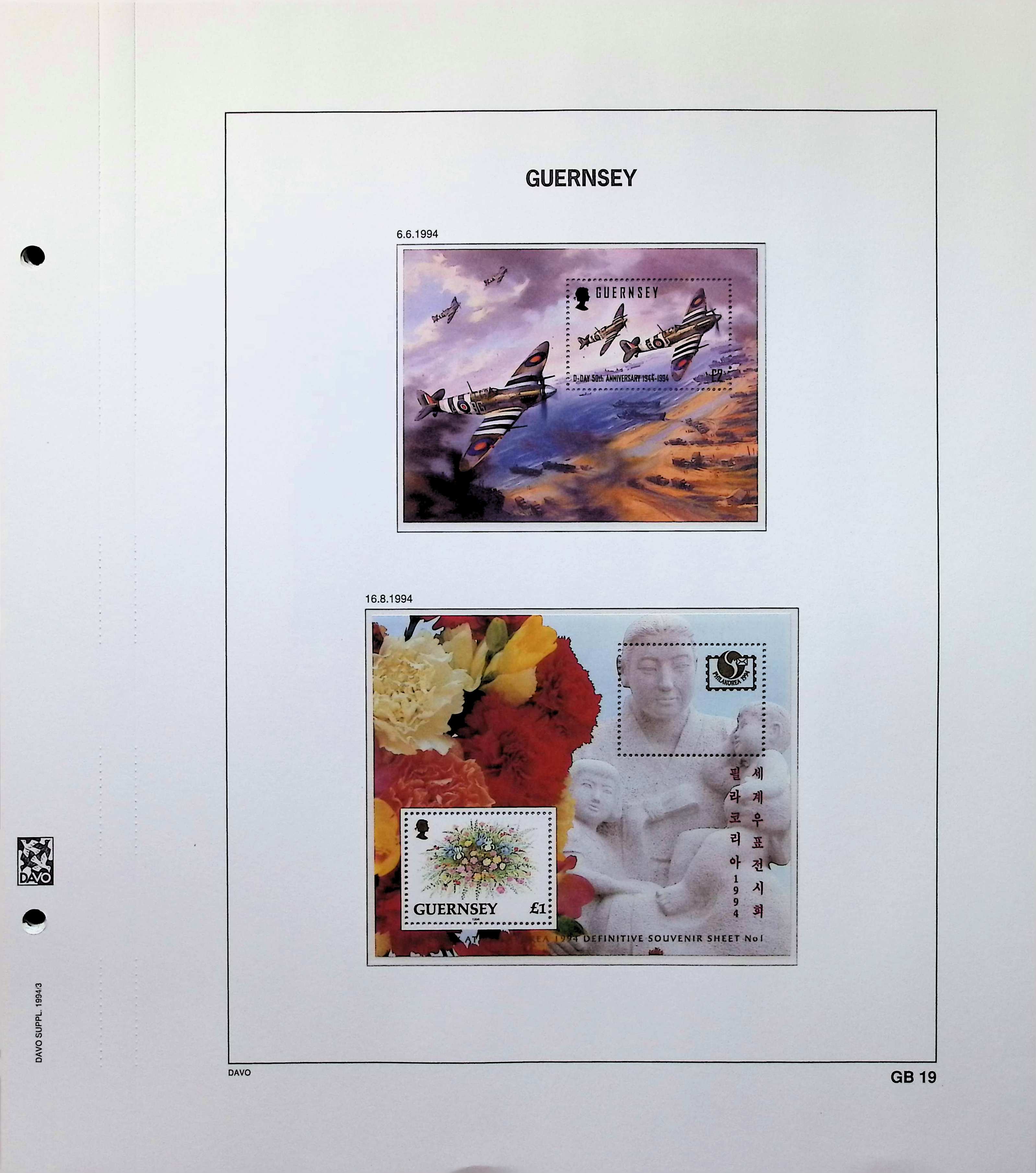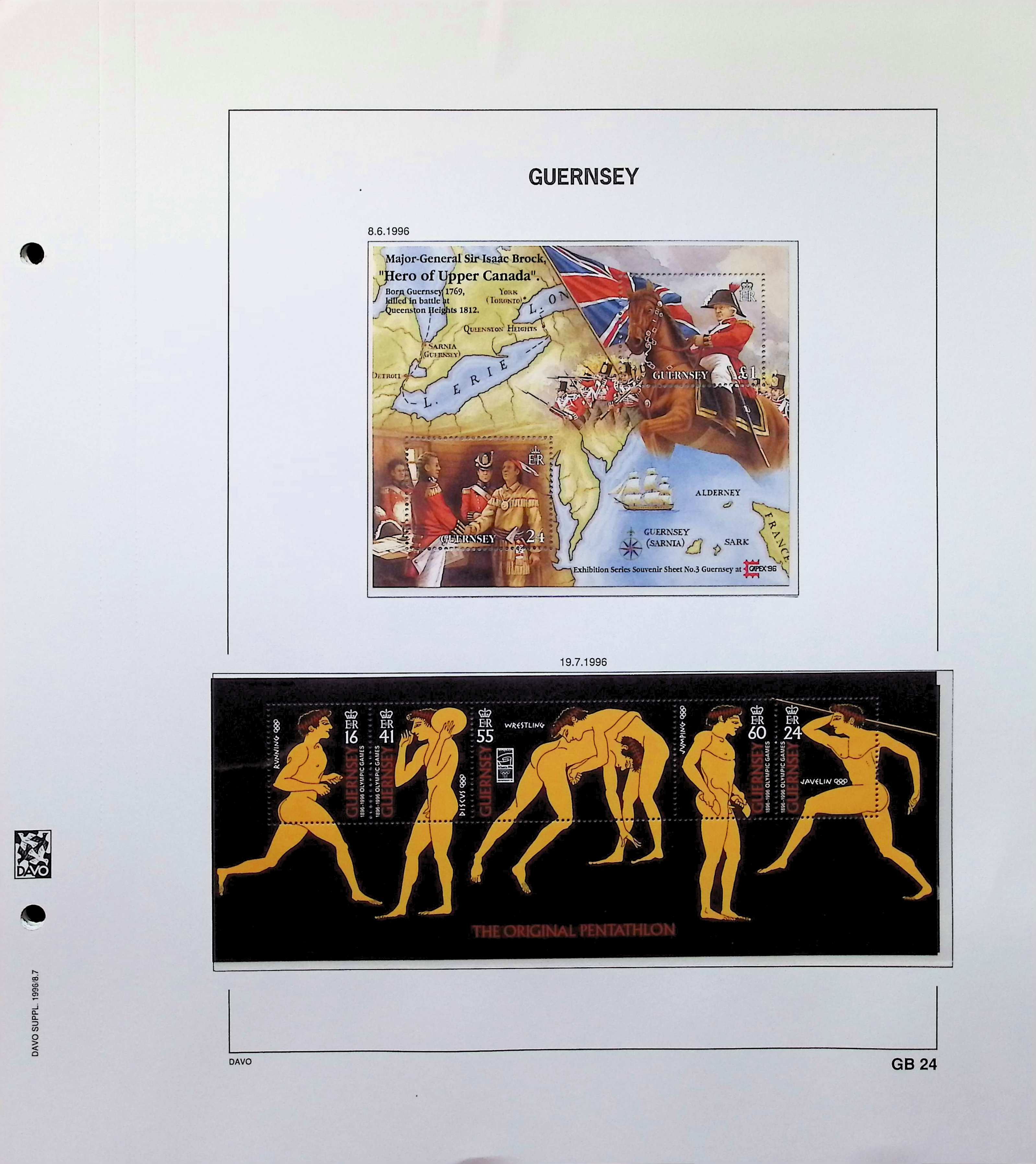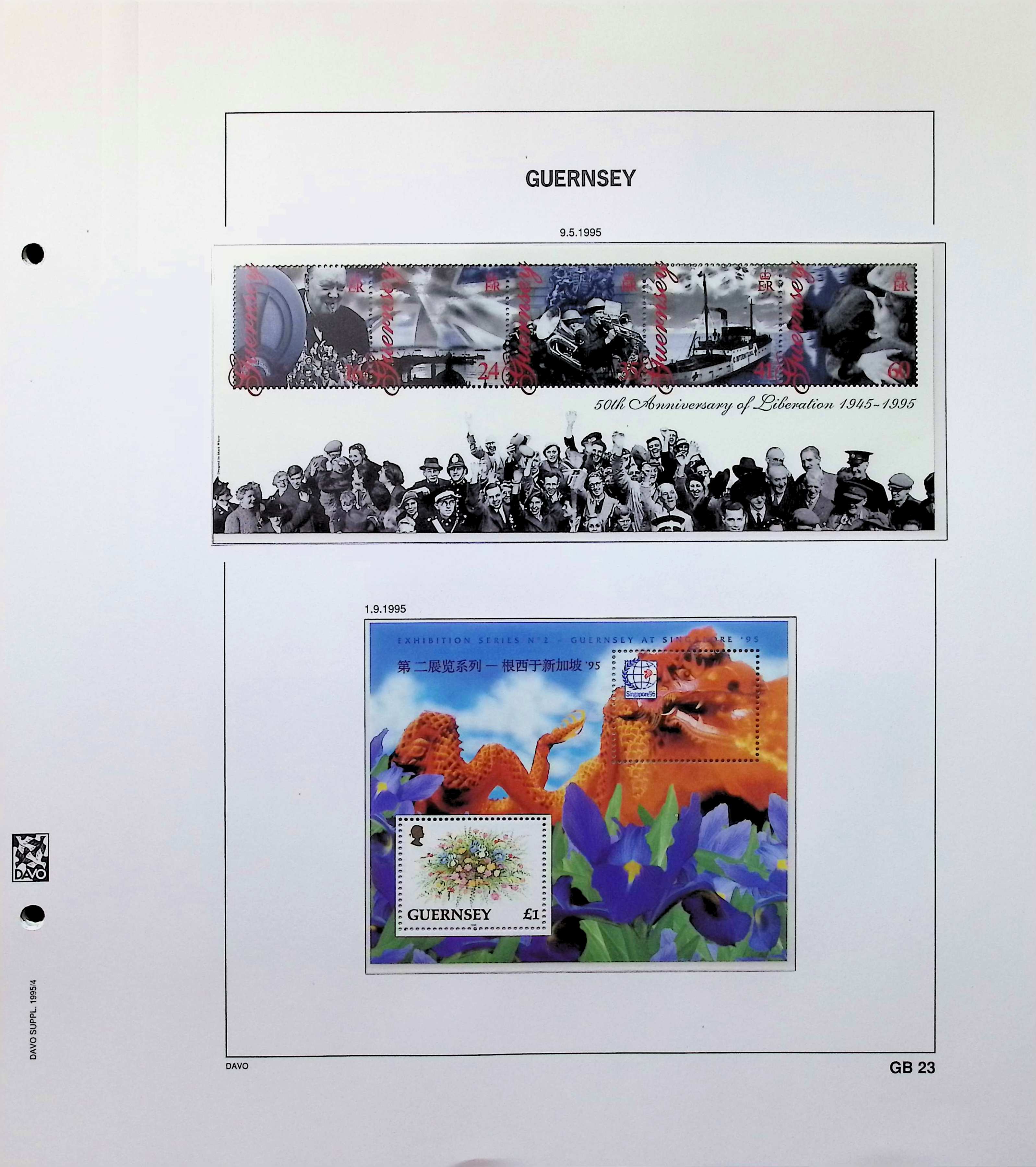 A collection of Guernsey souvenir sheets on Davo album pages running from 1990-1997. Also includes postage dues. All MNH and highly complete. Photos show actual item.