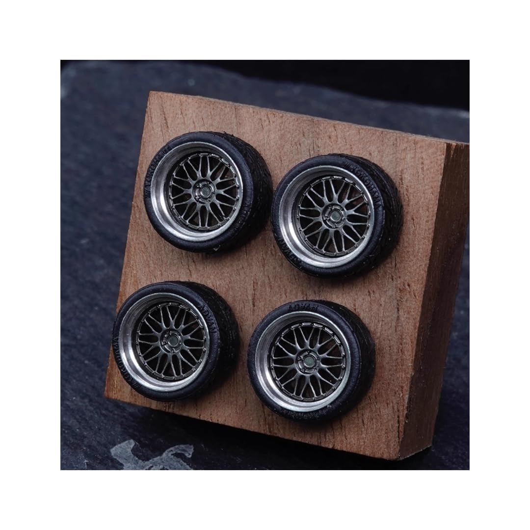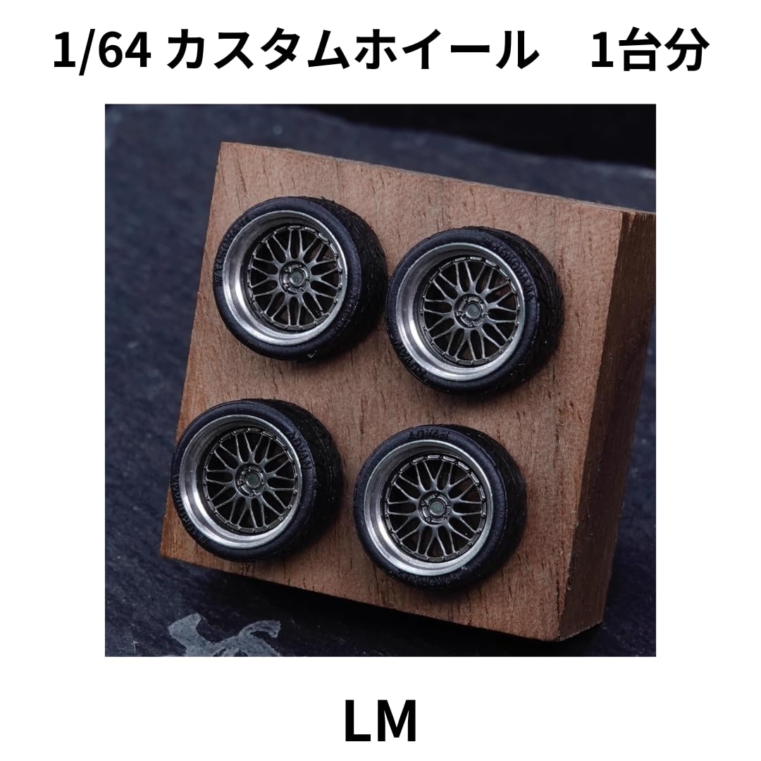 This product is a custom part for 1/64 scale miniature cars. It includes a wheel and tire set for one vehicle. The tire is made of rubber, providing a realistic texture and durability. It's the perfect item for customizing and modifying miniature cars, achieving a more realistic finish. Enjoy creating original designs with parts that perfectly match your favorite miniature cars.