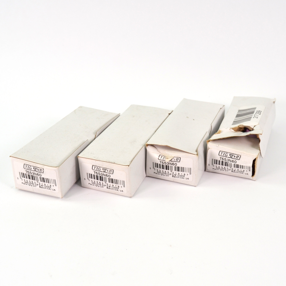 Condition: New Other. These Nozzles are in a NEW and UNUSED cosmetic condition and come individually packaged in the original TIG Star box that does show some signs of shelf wear and occasionally writing on the outside of the box. One of the boxes only contains 8 cups and the top is torn where the other boxes contain 10.
