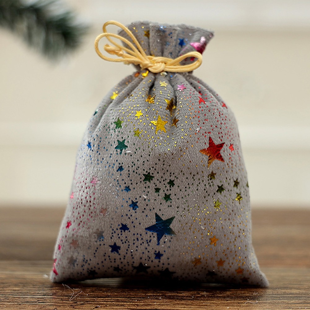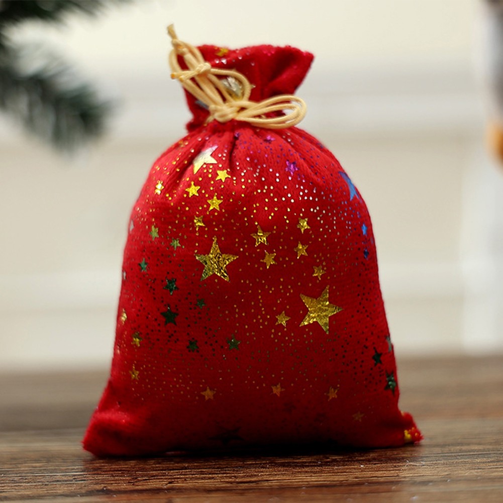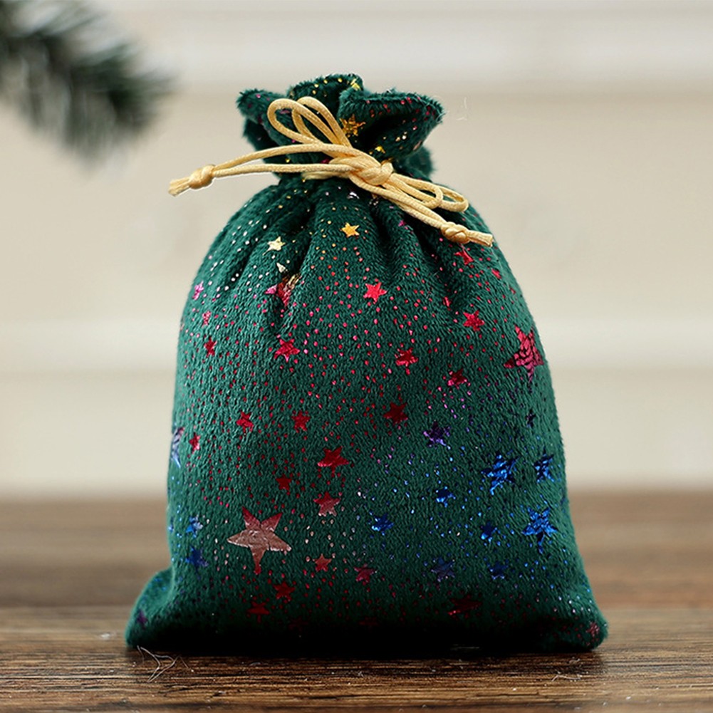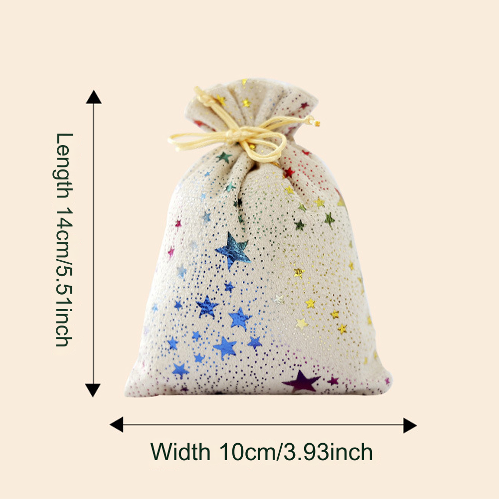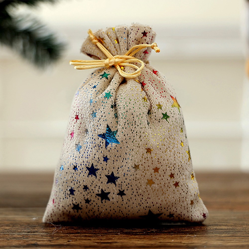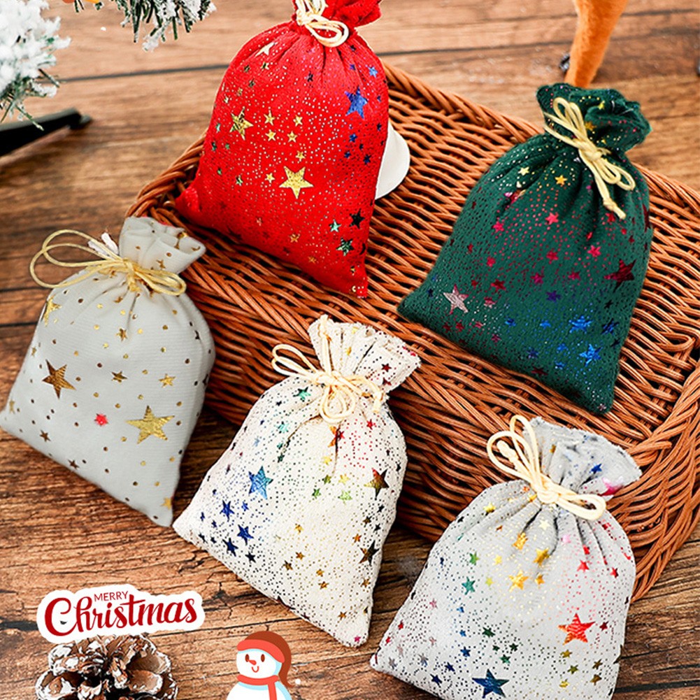 10 pièces sacs à bonbons de Noël à cordon paillettes motif étoile tissu mat
