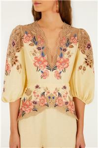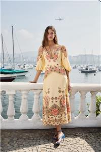 Bask in sunshine with the Butter Yellow Embroidered Midi Dress by FARM Rio. Crafted from eco-friendly Euroflax and Lenzing fabrics, this dress features a warm butter yellow hue that brightens any day. Delicate embroidery dances along the fabric, adding a handcrafted touch to the airy silhouette. The flattering V neckline invites a graceful ease, while the midi length flows with gentle movement—pure Brazilian charm wrapped in sustainable softness.