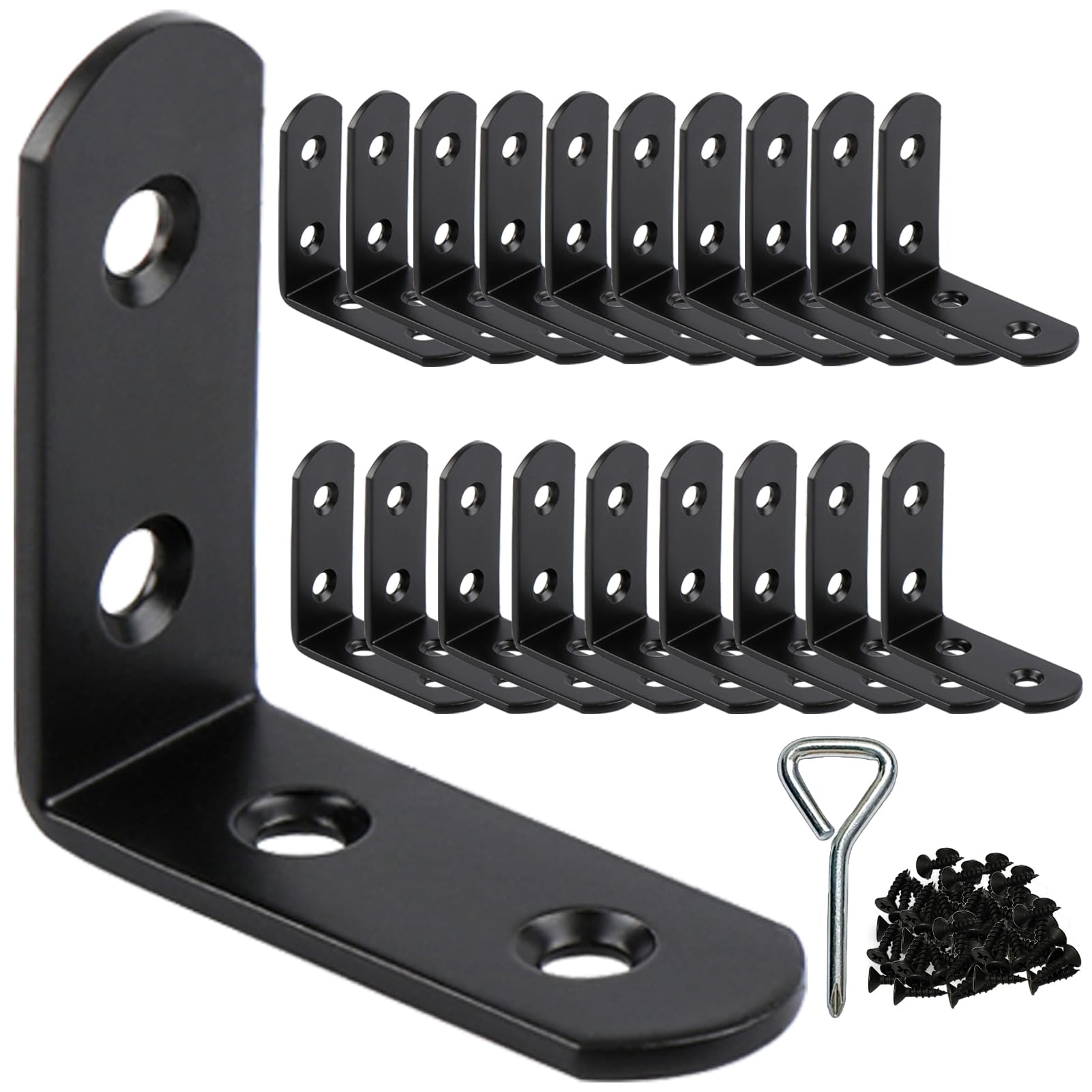 2 Inch L Brackets for Wood Shelves Corner Brace 20 Pack- Reinforced Black